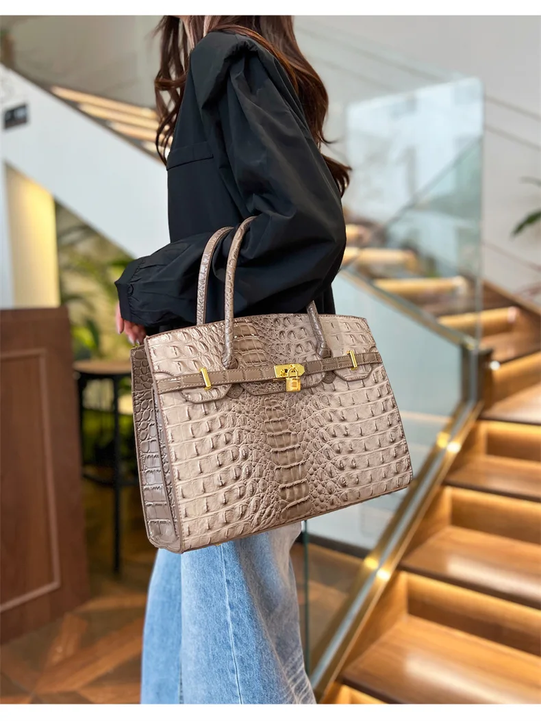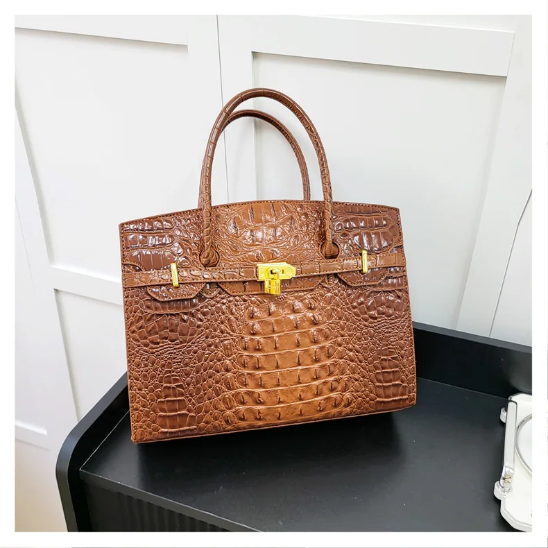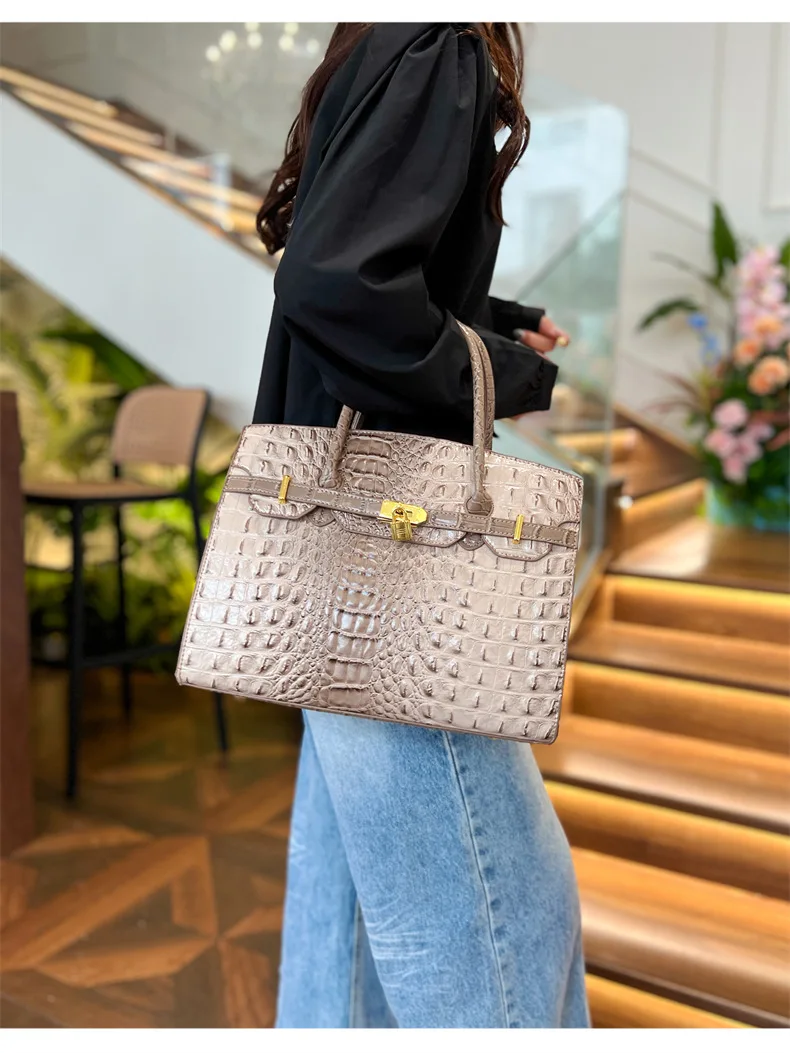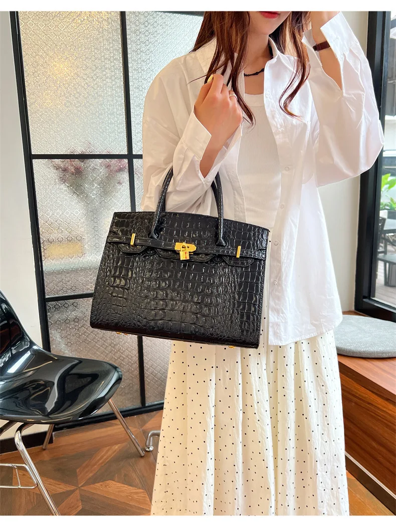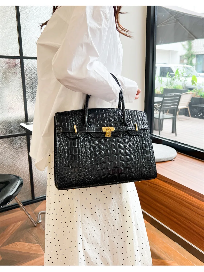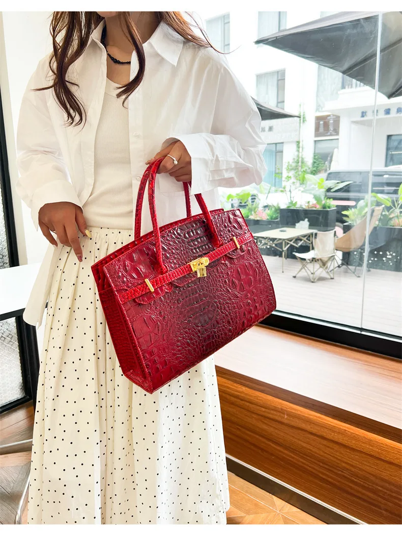 2025 Crocodile-Embossed Luxury Casual Tote Bag - Large Capacity Top Handle Bag with Lock Closure