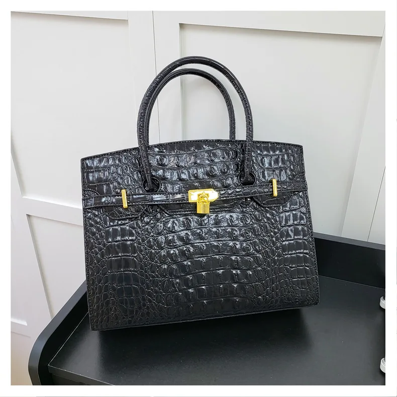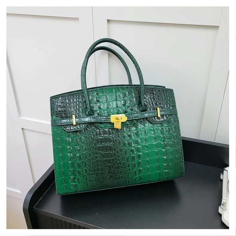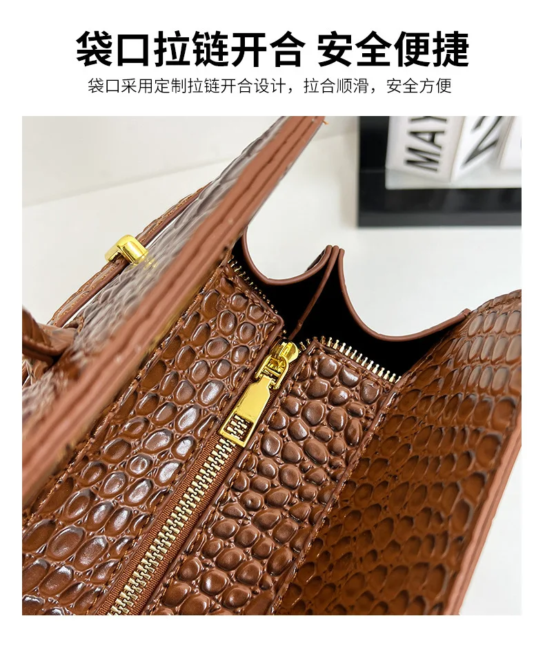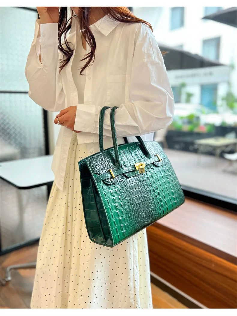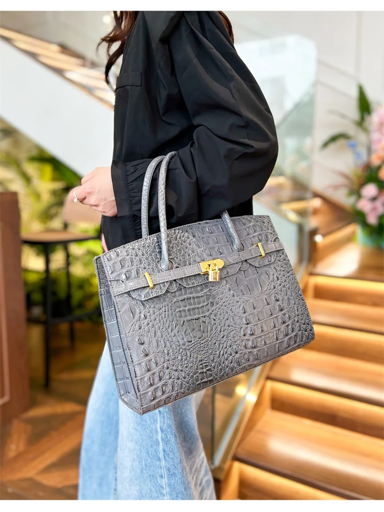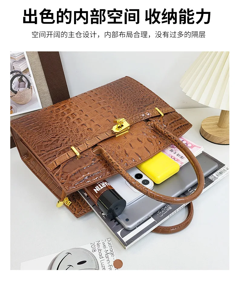 2025 Crocodile-Embossed Luxury Casual Tote Bag - Large Capacity Top Handle Bag with Lock Closure