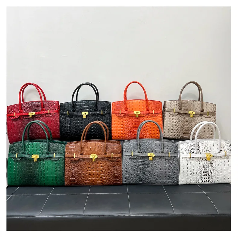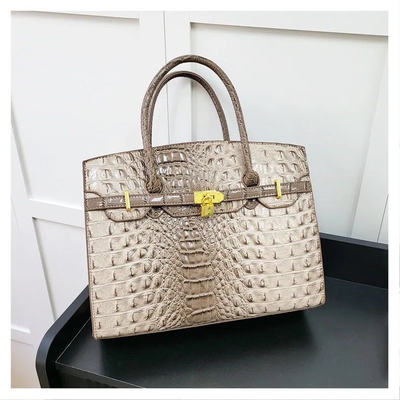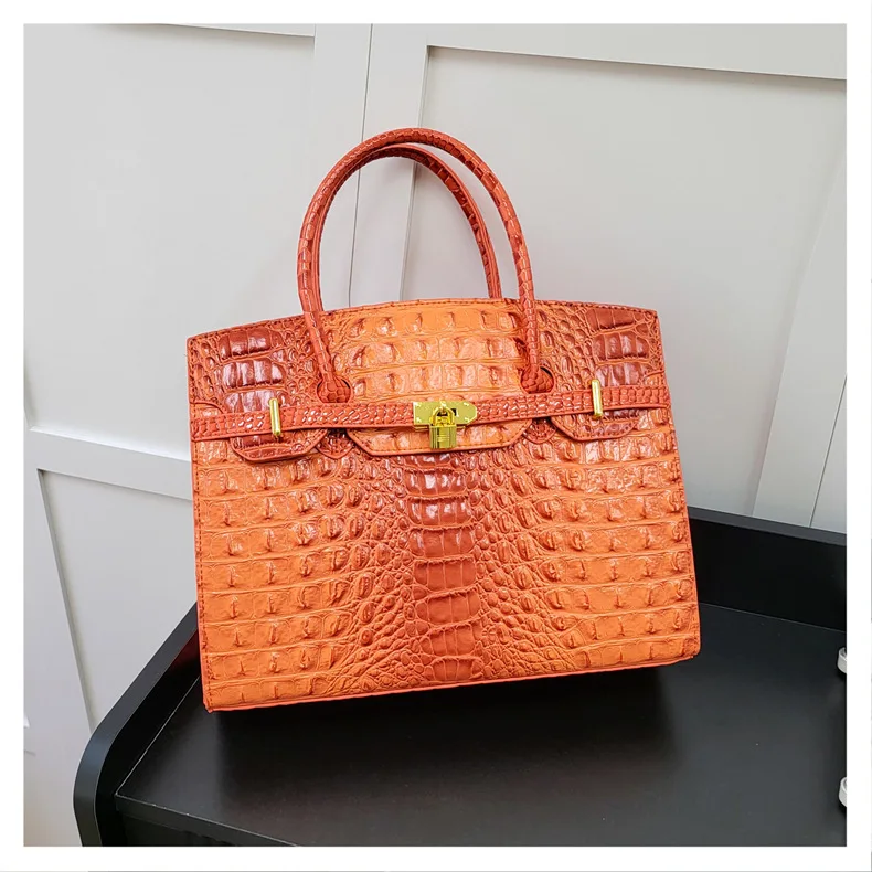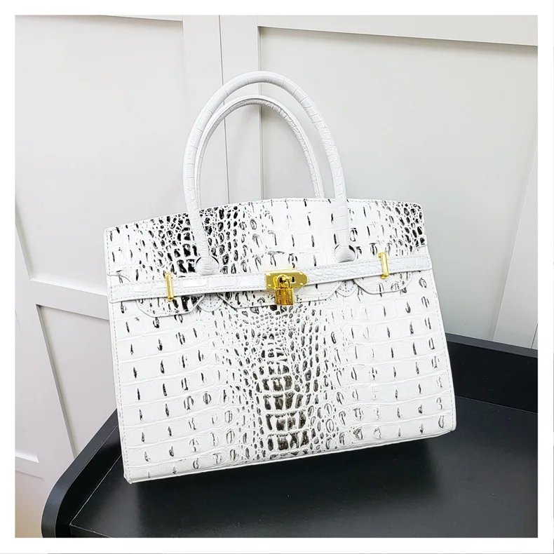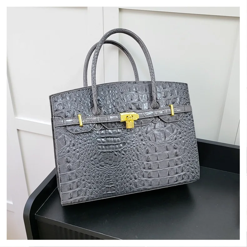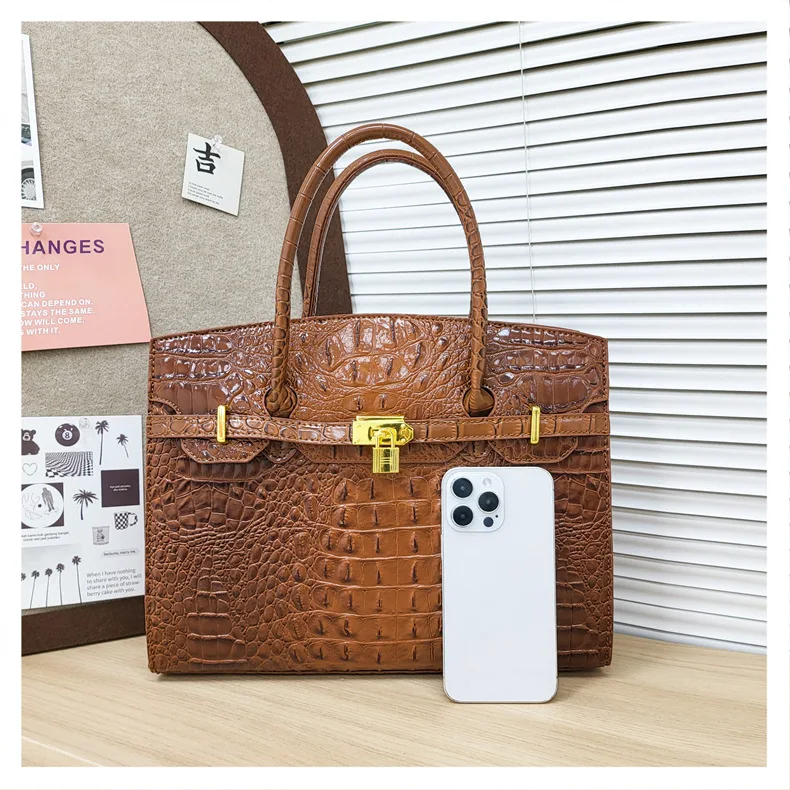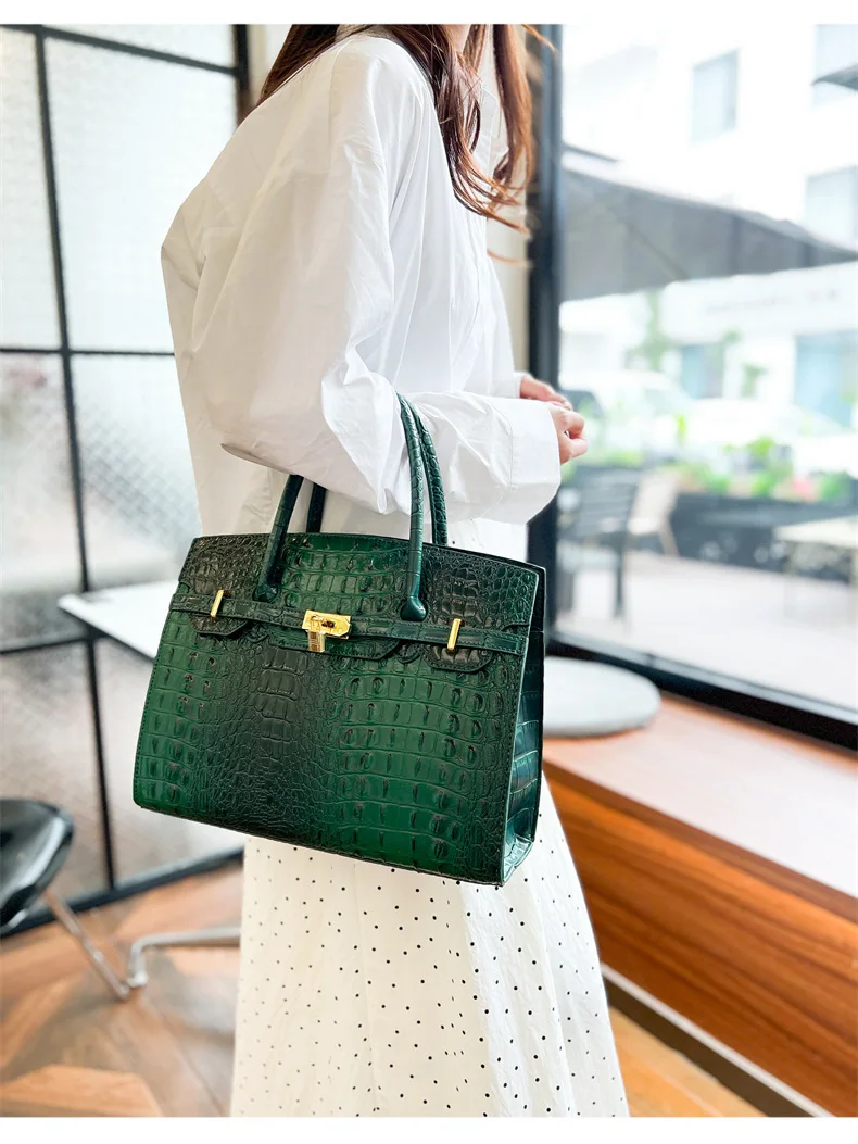 2025 Crocodile-Embossed Luxury Casual Tote Bag - Large Capacity Top Handle Bag with Lock Closure