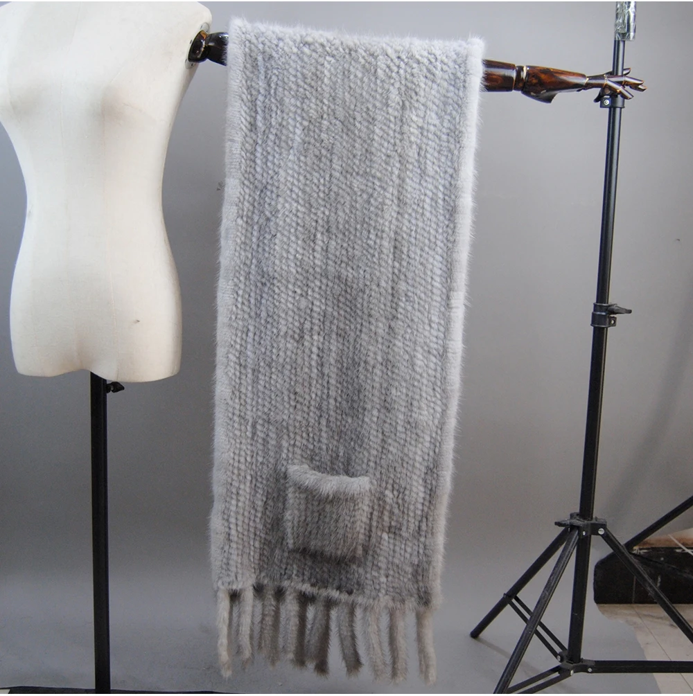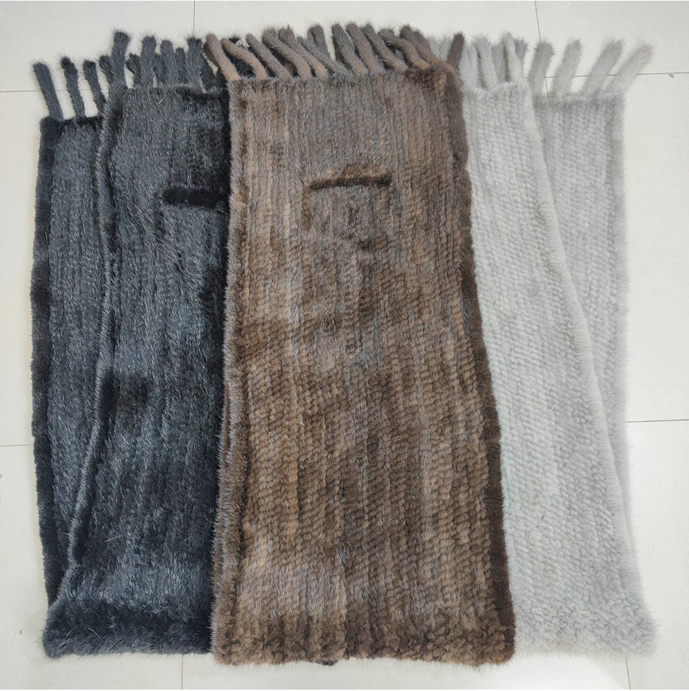 2025 Hot Sale Long Style Winter Warm Real Natural Mink Fur Scarf Real Mink Fur Shawl Fashion Women Knitted Real Mink Fur Scarves