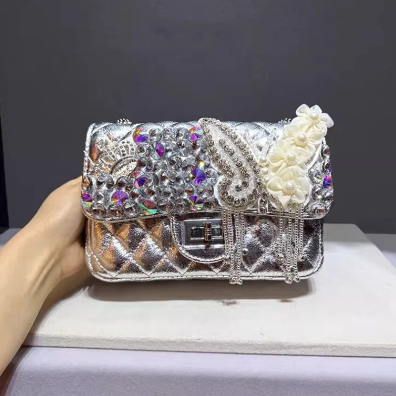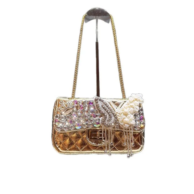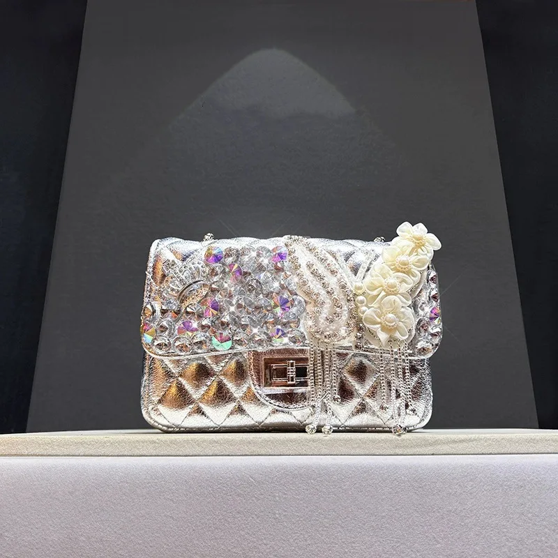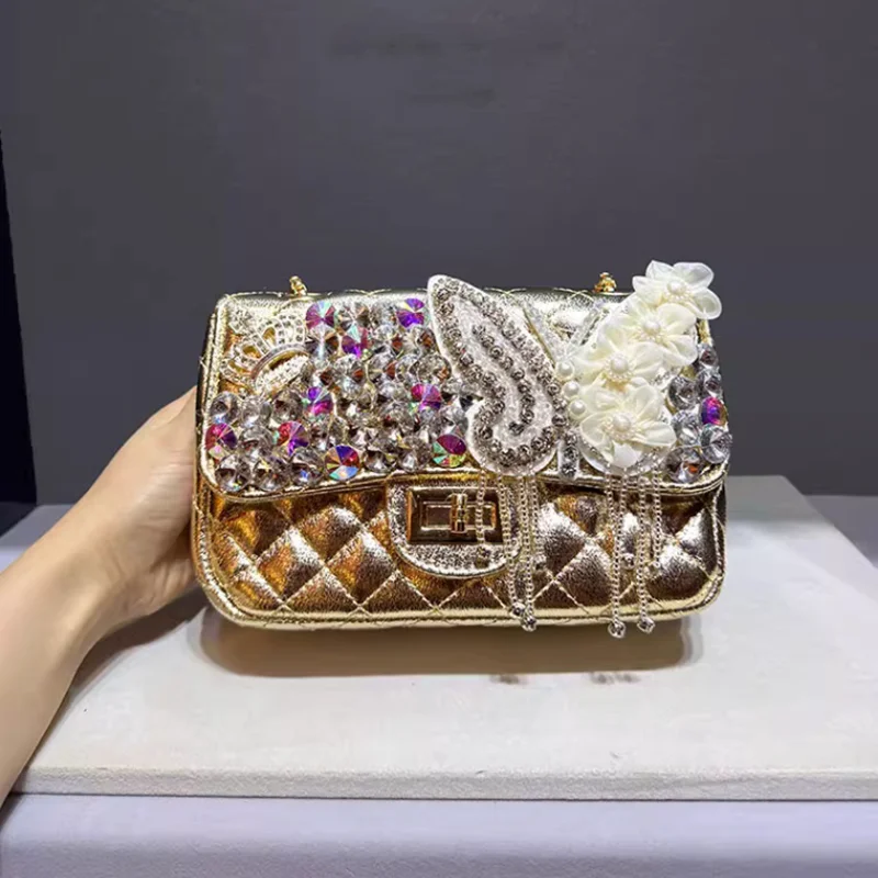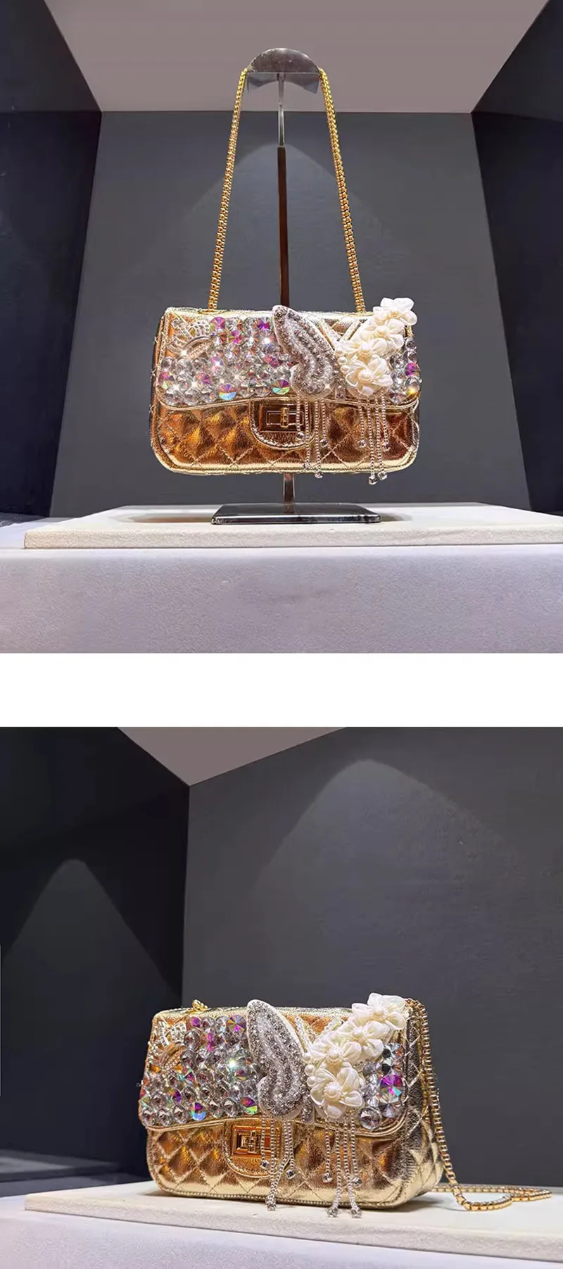 2025 Luxury Classic High-end Diamond Lattice Evening Clutch Bag Women Handmade 3D Butterfly Pearl Rhombus Handbag Shoulder Bag