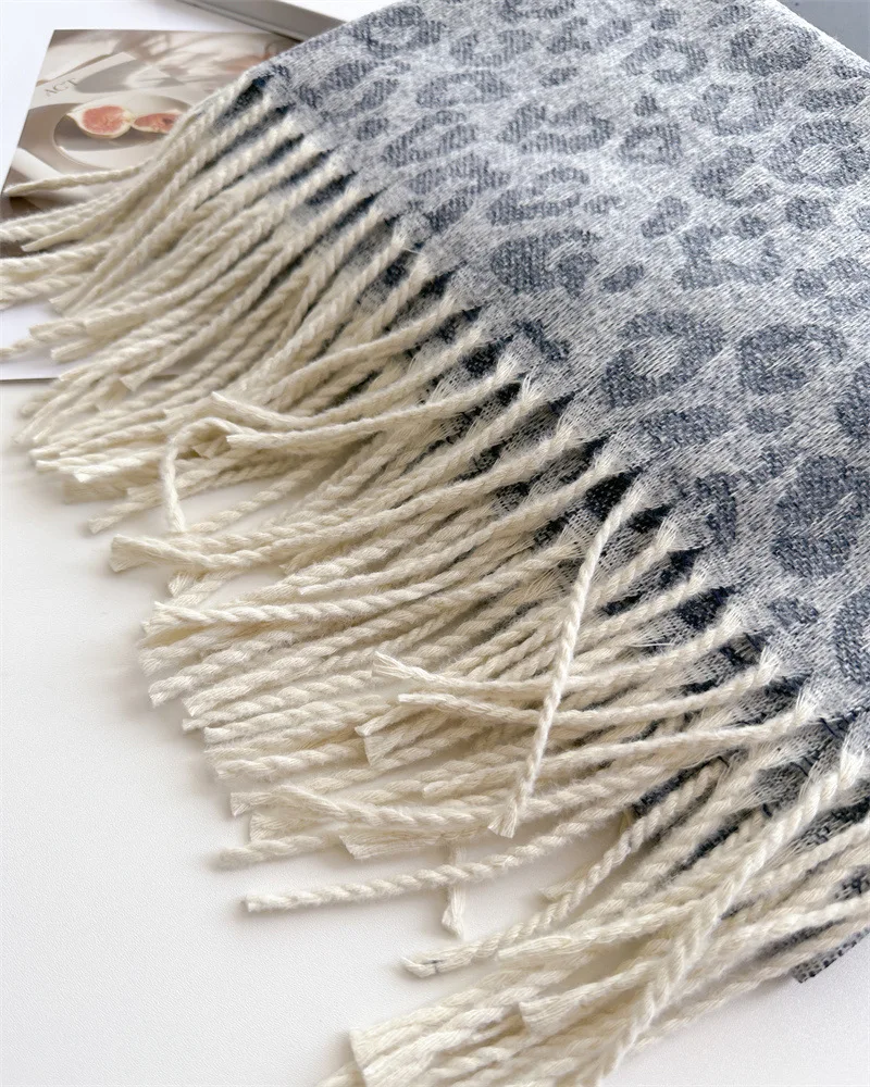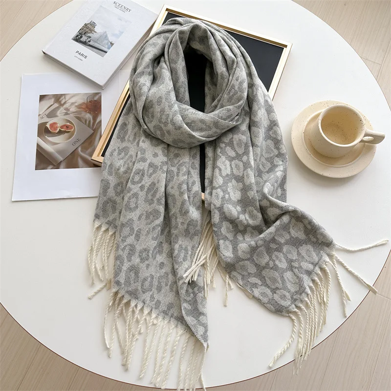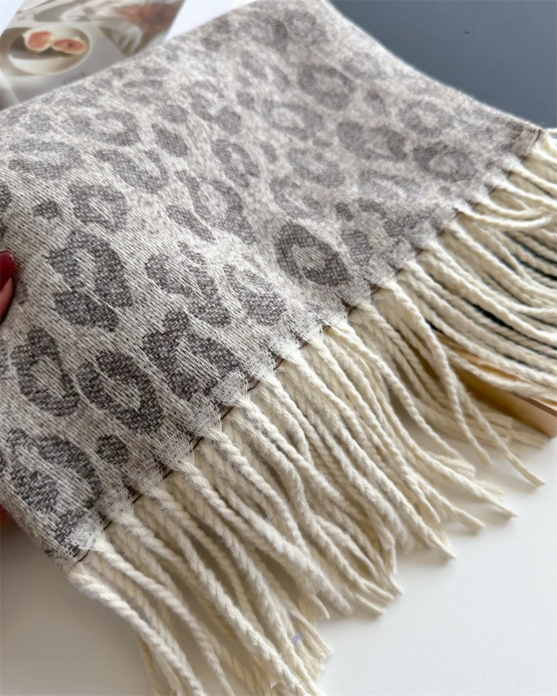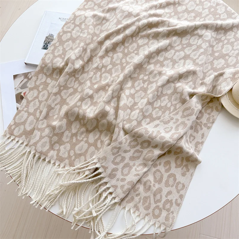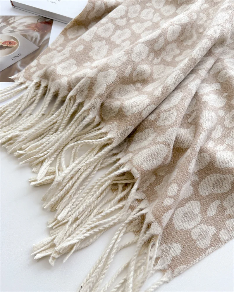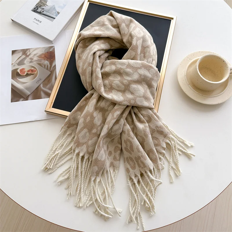 2025 New Fashion Leopard Scarf Autumn Winter Warm Bib Women Tassel Shawl Luxury Warm Scarves Imitation Cashmere Wraps