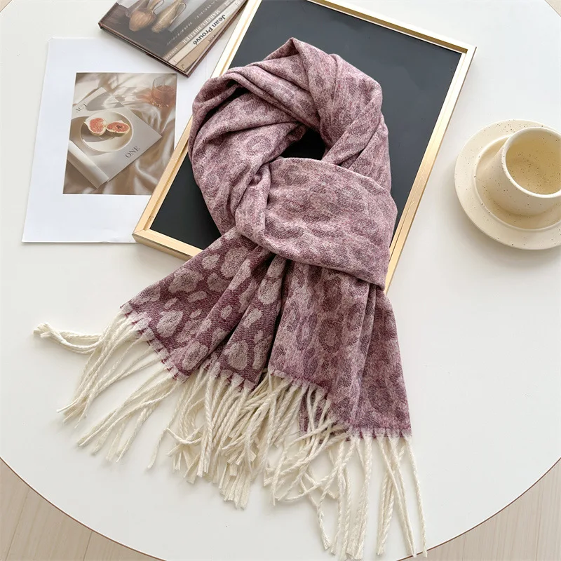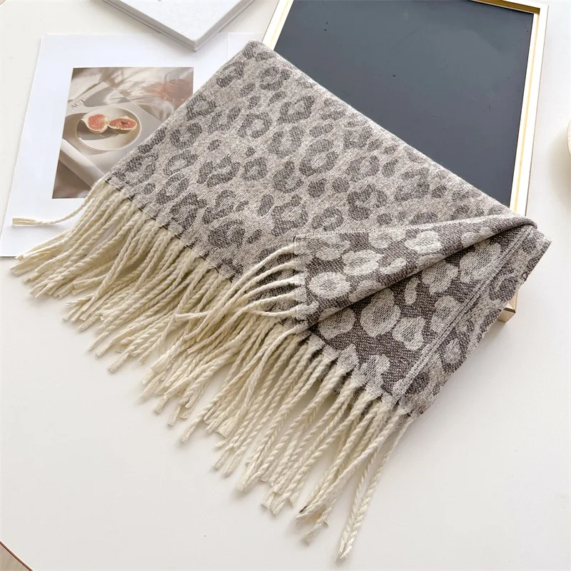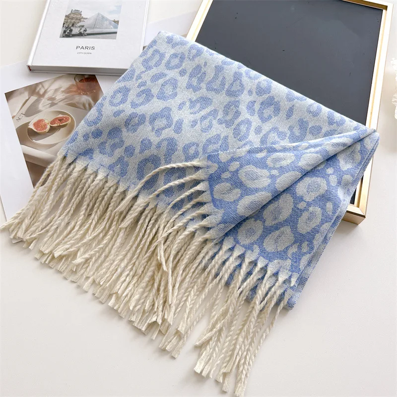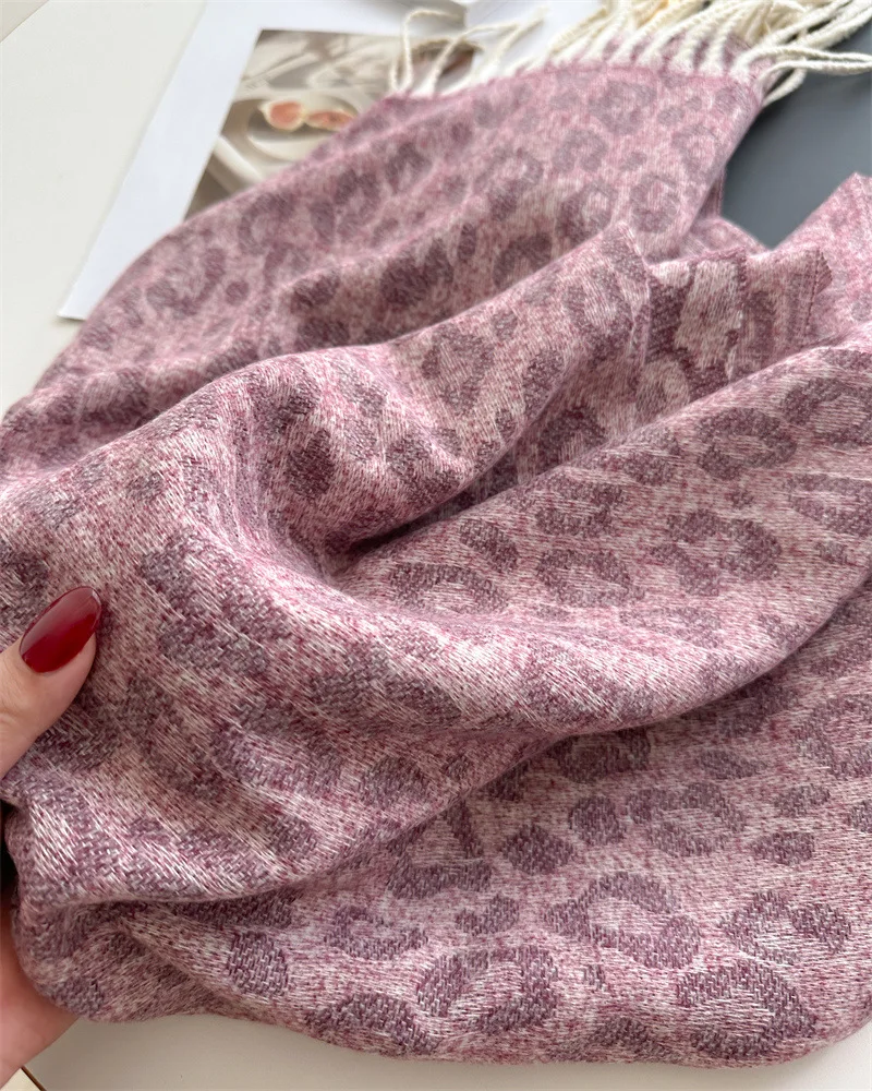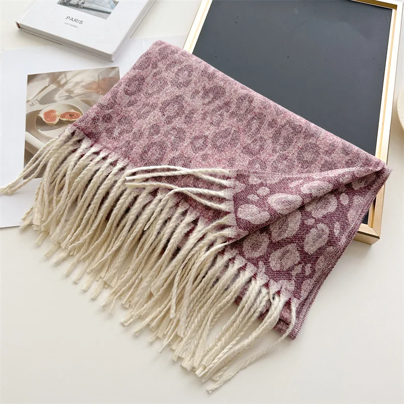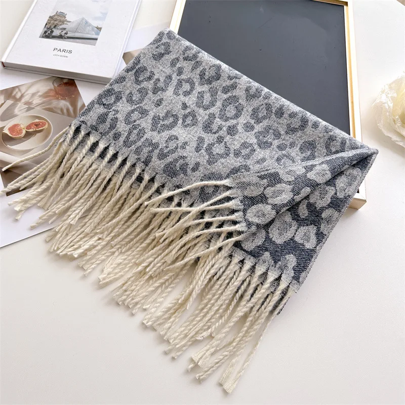 2025 New Fashion Leopard Scarf Autumn Winter Warm Bib Women Tassel Shawl Luxury Warm Scarves Imitation Cashmere Wraps