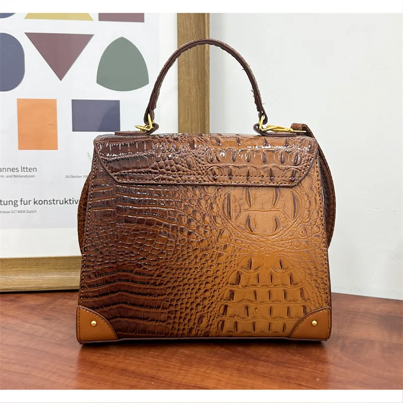 2025 Trendy Lock Bag Exotic Crocodile Pattern, Elegant Hourglass Shape, Versatile Purse for Women, Stylish Daypack