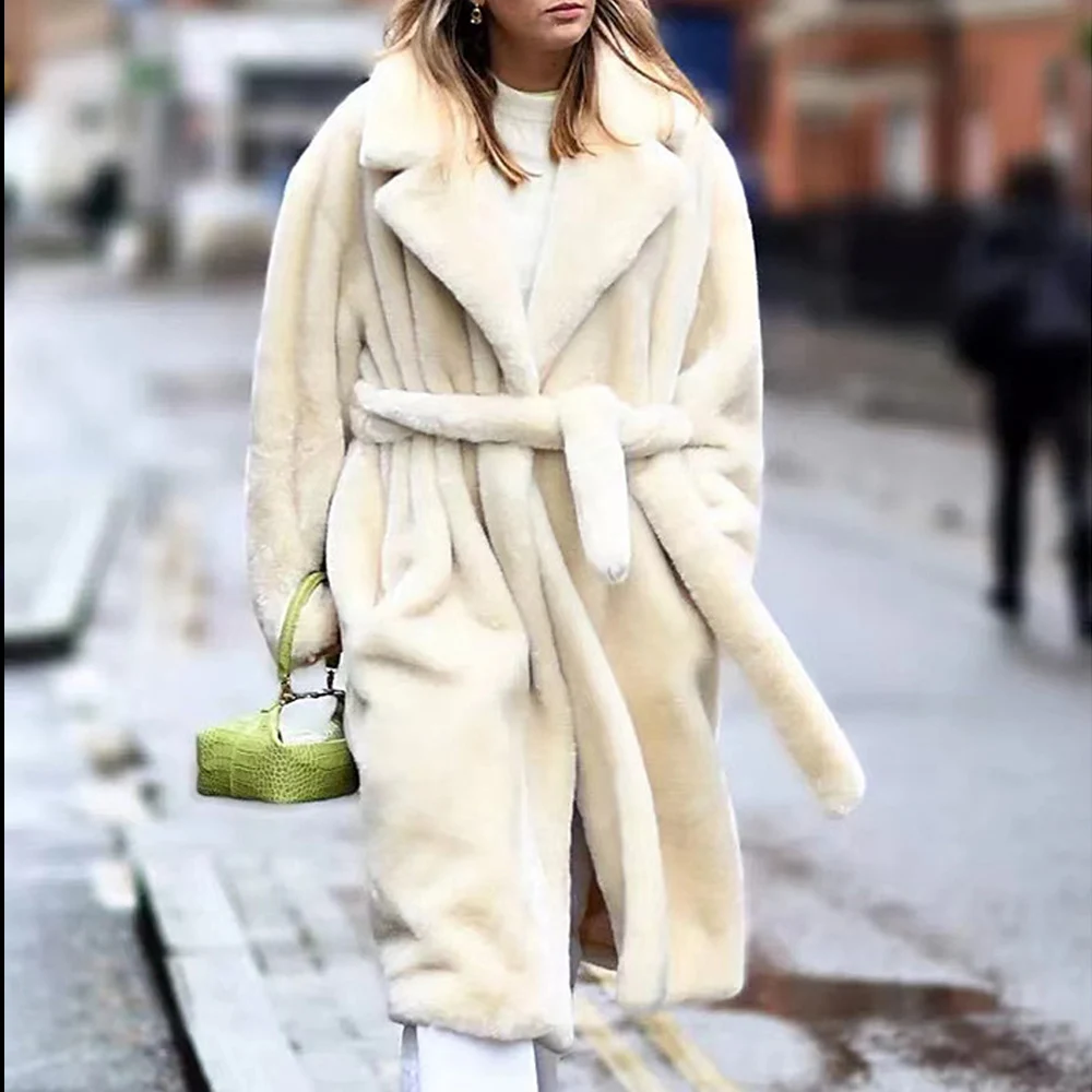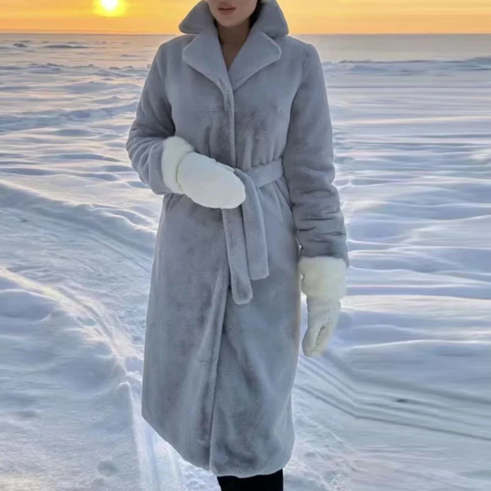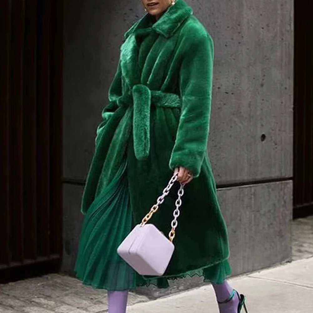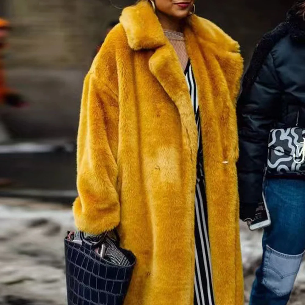 2025 Winter Plus Size Faux Fur Long Coat Women Elegant Long Sleeve Fluffy Outwear Jacket Ladies Large Thick Warm Furry Outwear