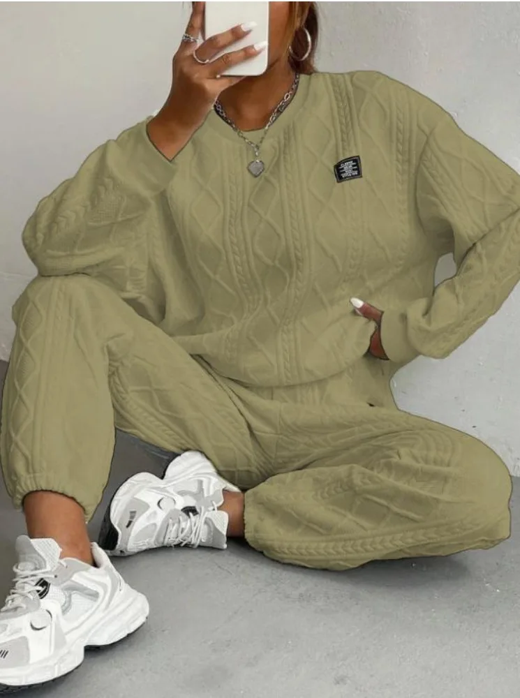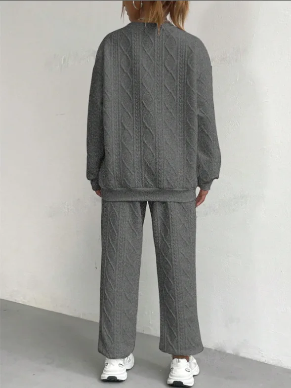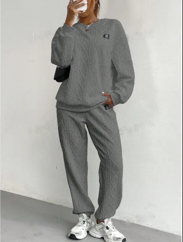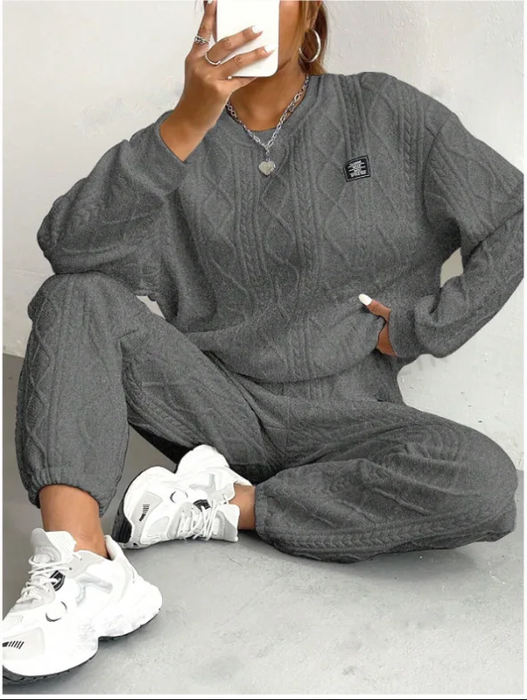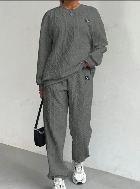 2025 Women's Fashionable Casual Jacquard Long Sleeved Casual Round Neck Sweatshirt Long Pants Set Autumn New Item Sets