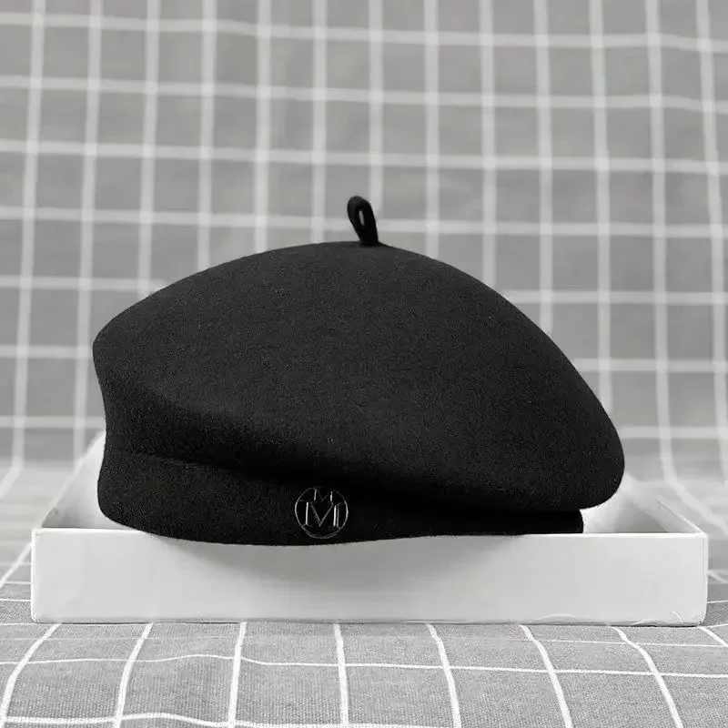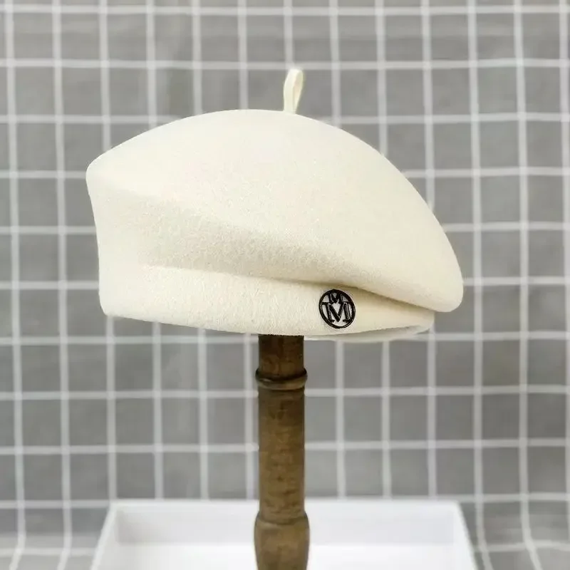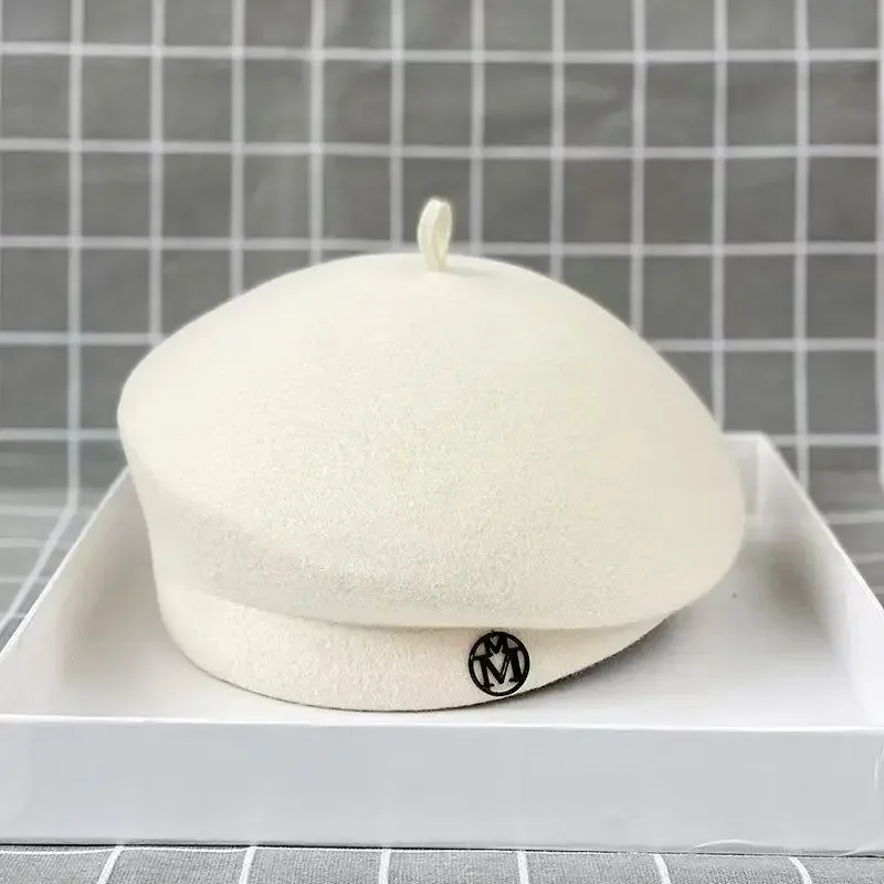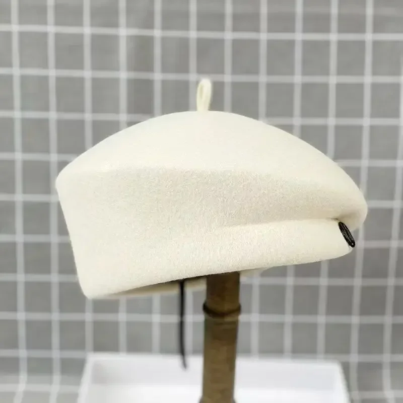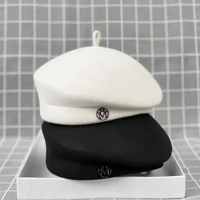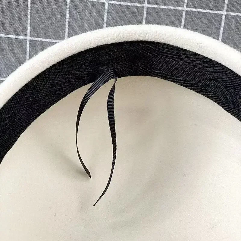 2025 Women's Wool Felt Beret Hat Winter Warm Formal Fedora Pillbox Fascinator Cap - White Black