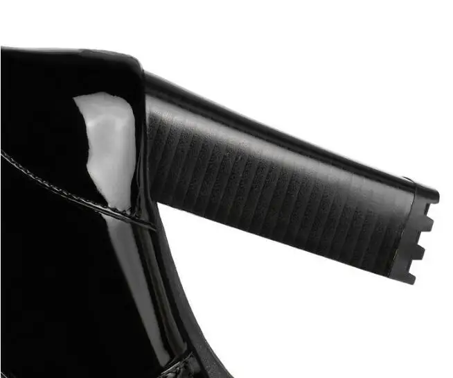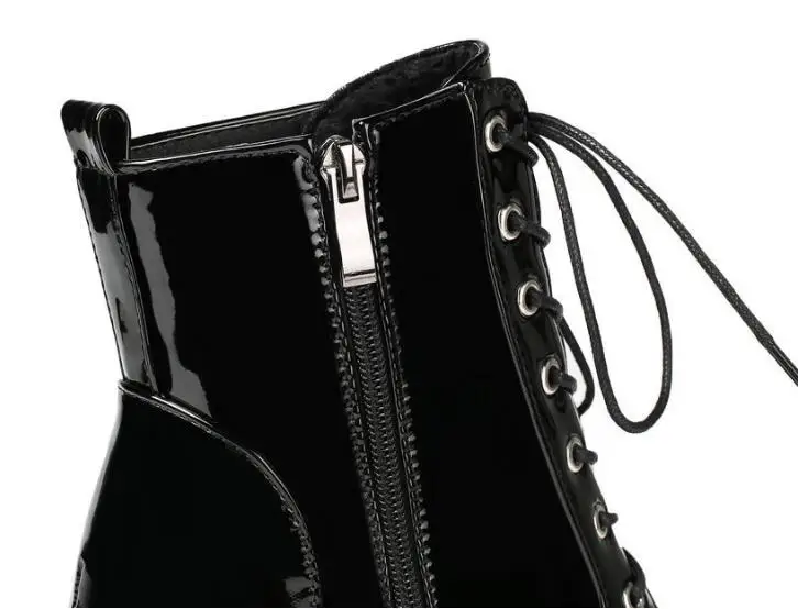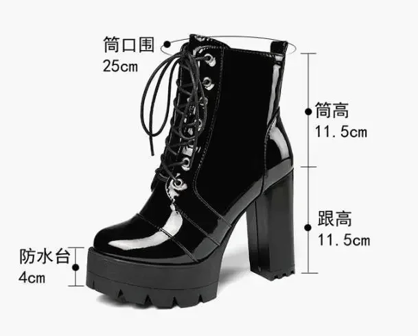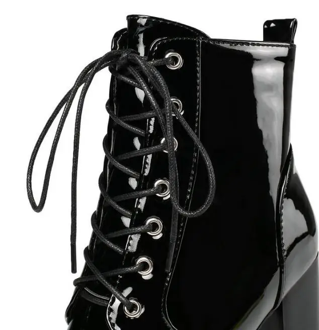 2026 Thick High Heeled Female Patent Leather Ankle Boots Round Toe Lace-up Zipper Women Short Boot Gothic Women Shoe Botas Mujer