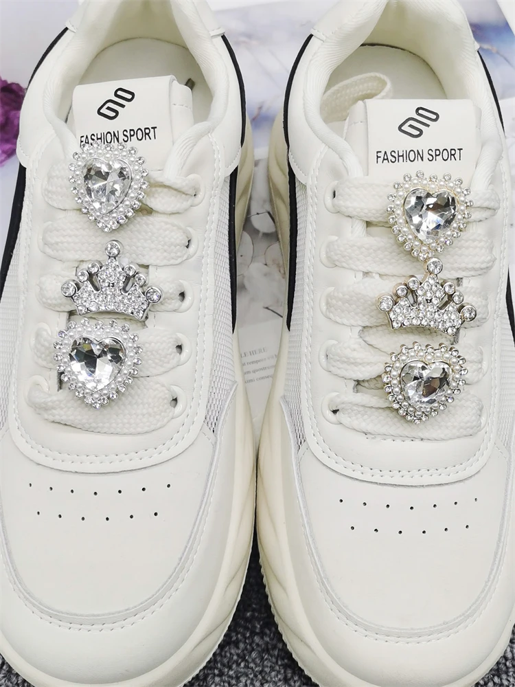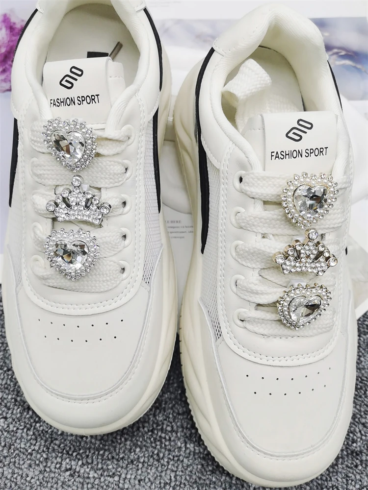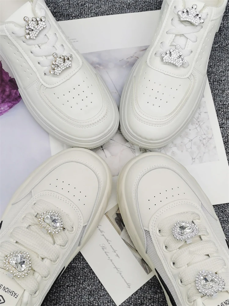 2PCS Luxury Bling Shoe Lace Charms ABS Rhinestone Buckle Decoration DIY Golden Crown Shoelace Clips Accessories Fit Women Boots
