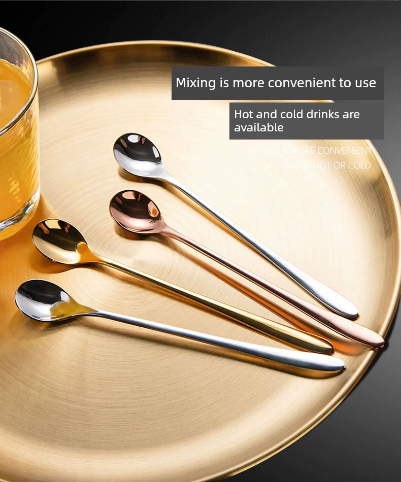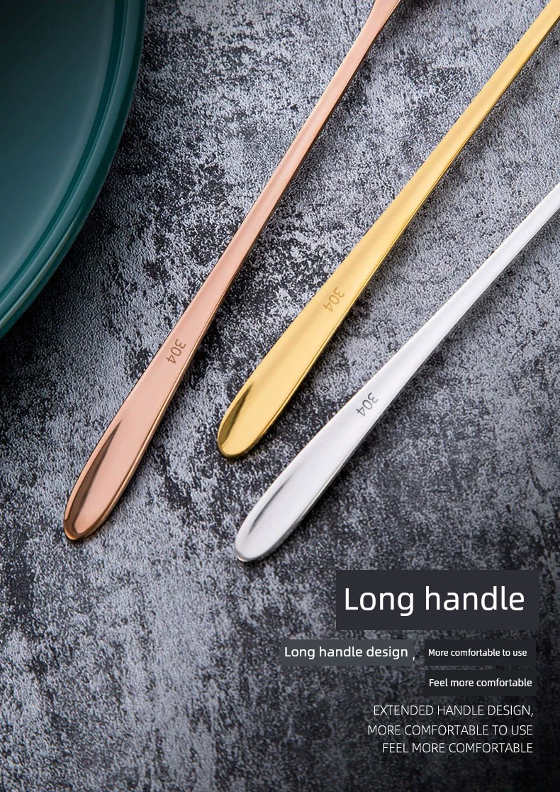 304 Stainless Steel Long Spoon For Home Ins Golden Delicate Coffee Stirring Small Spoon Good-looking Dessert Spoon