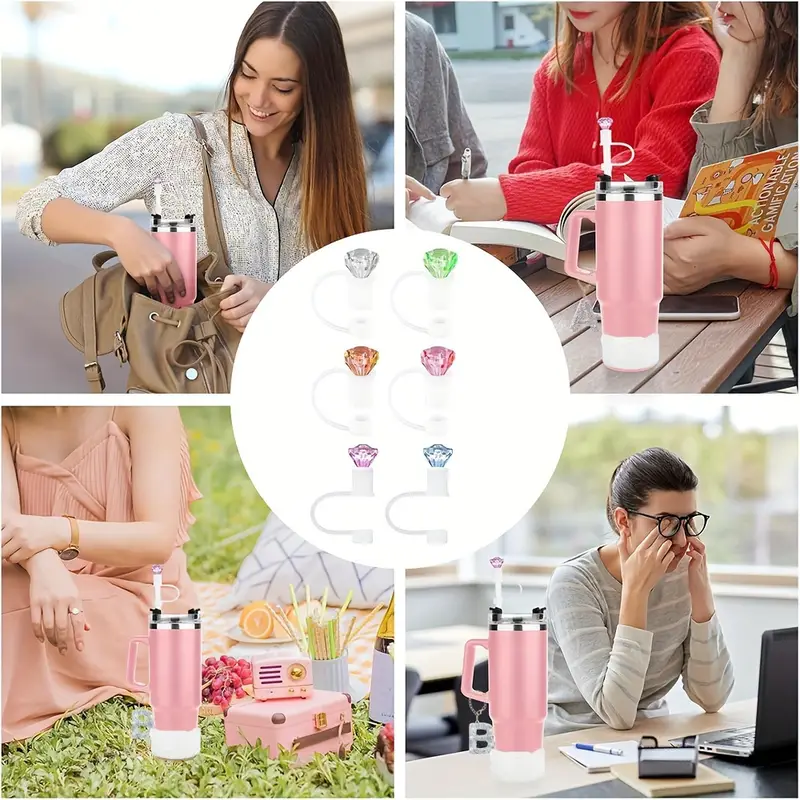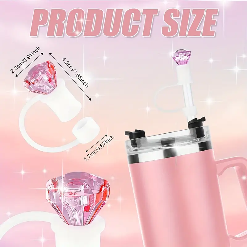 3pcs Set | 1pc Diamond Straw Cover Topper, 1pc Gittler Silicone Boot, 1pc Crystal Name ID Letter Handle Charm | Specially Designed for Tumbler Cup Accessories