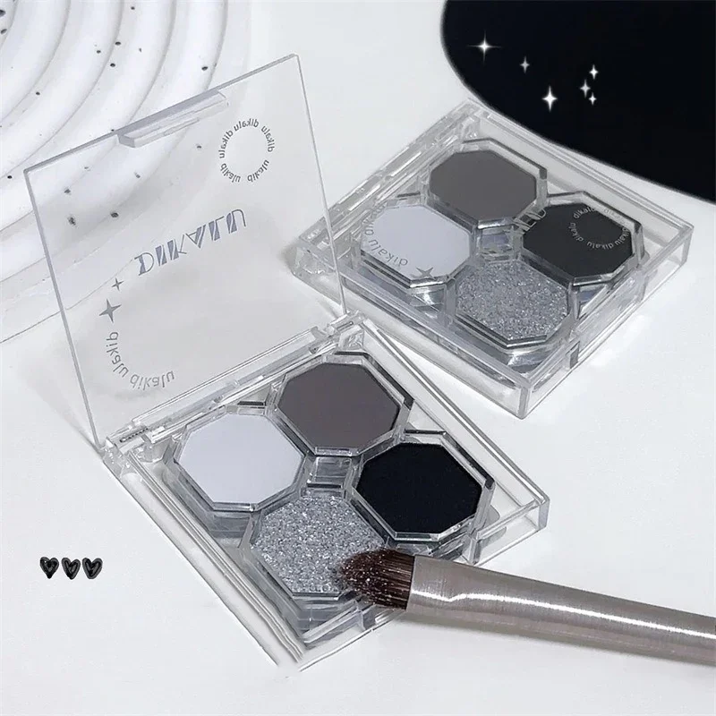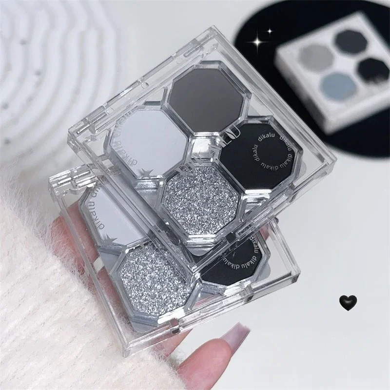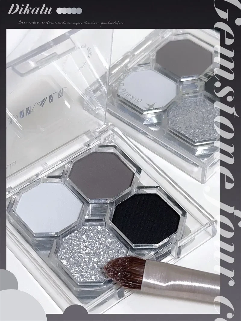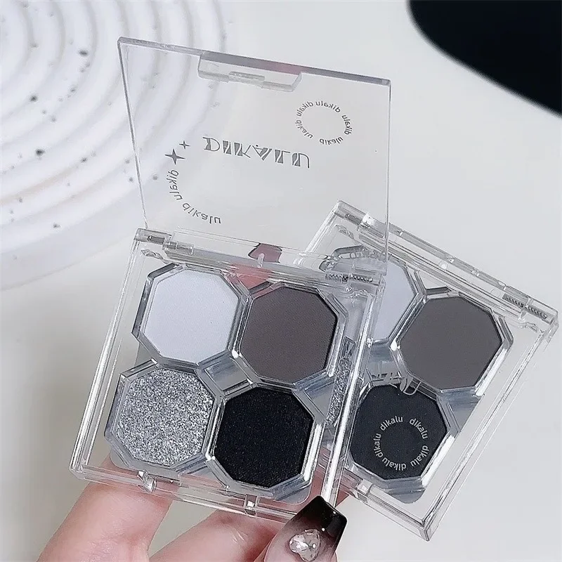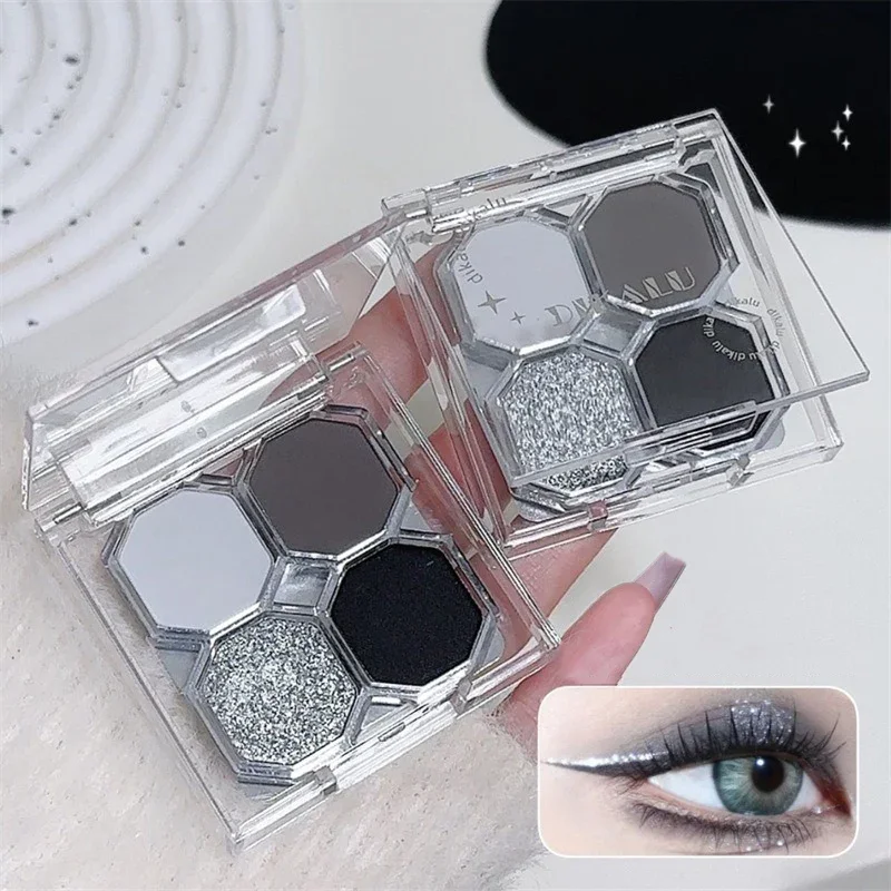 4-Color Punk Smokey Matte Glitter Eyeshadow Palette Shimmer Eye Shadow Makeup Palette Cool Toned Gray Black Eye Pigment Palette