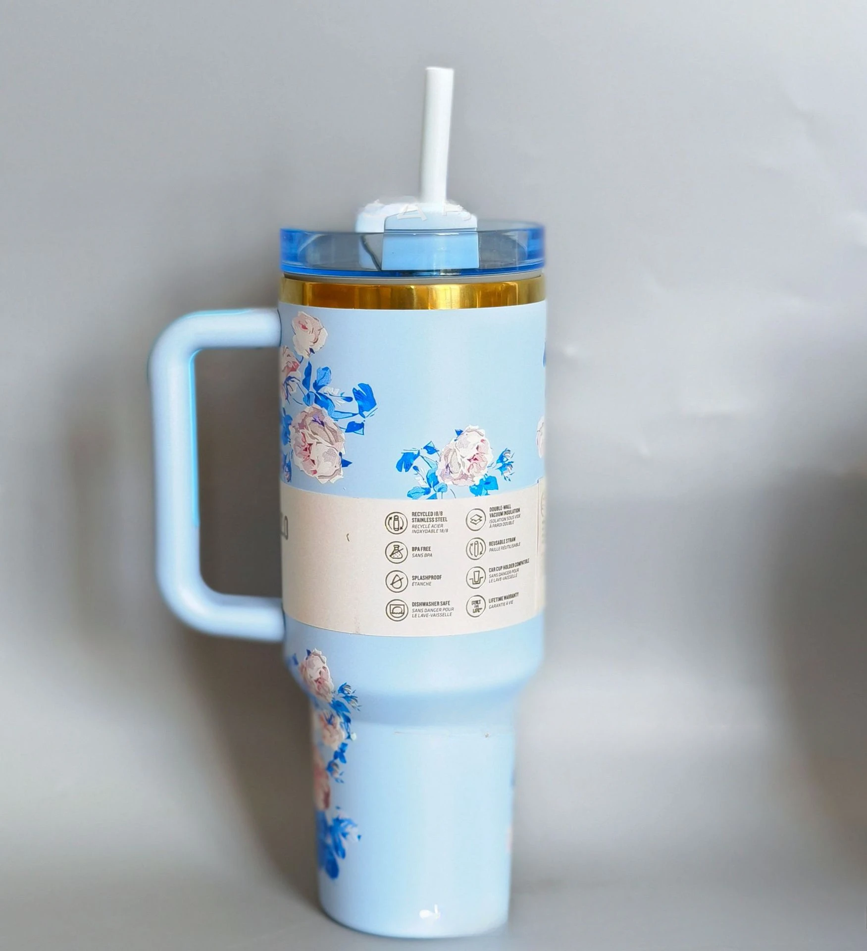 2.Whether you prefer small sips or maximum thirst quenching, it has developed an advanced lid, featuring a rotating cover with three positions: a straw opening designed to resist splashes with a seal that holds the reusable straw in place, a drink opening, and a full-cover top for added leak resistance. We've also included an ergonomic, comfort-grip handle, so you can easily carry your ice-cold water to work, meetings, the gym or trips out of town.