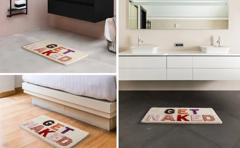 dd a little humor to your everyday bath routine with the Get Naked Bath Rug. A cheeky and stylish addition to your master bathroom or guest bath decor.
