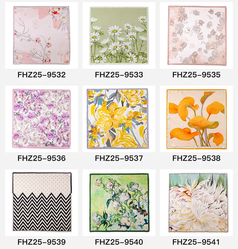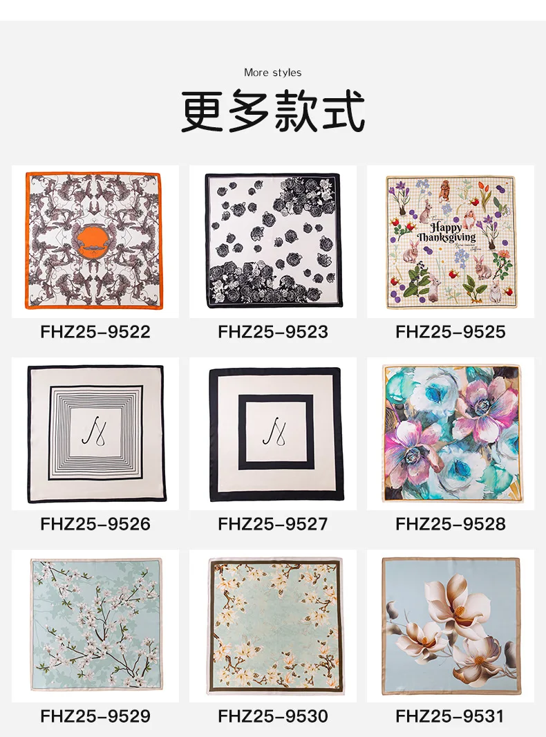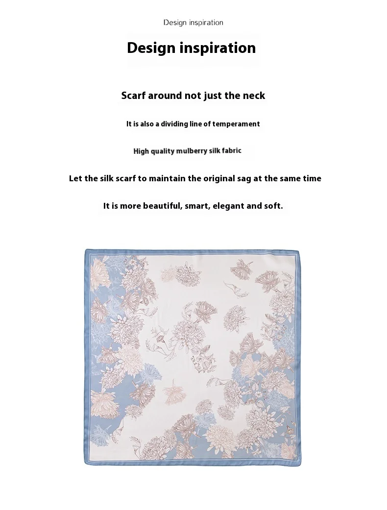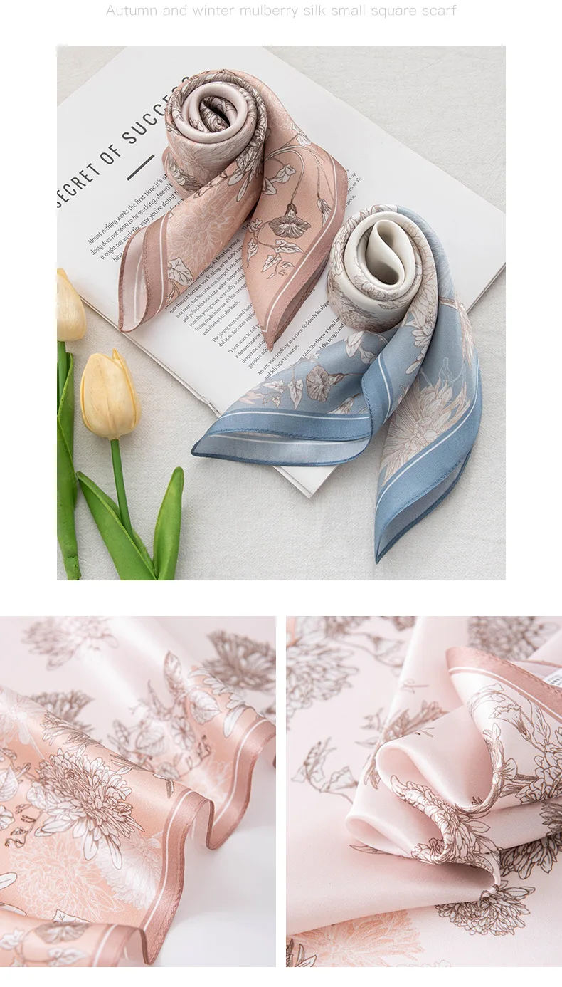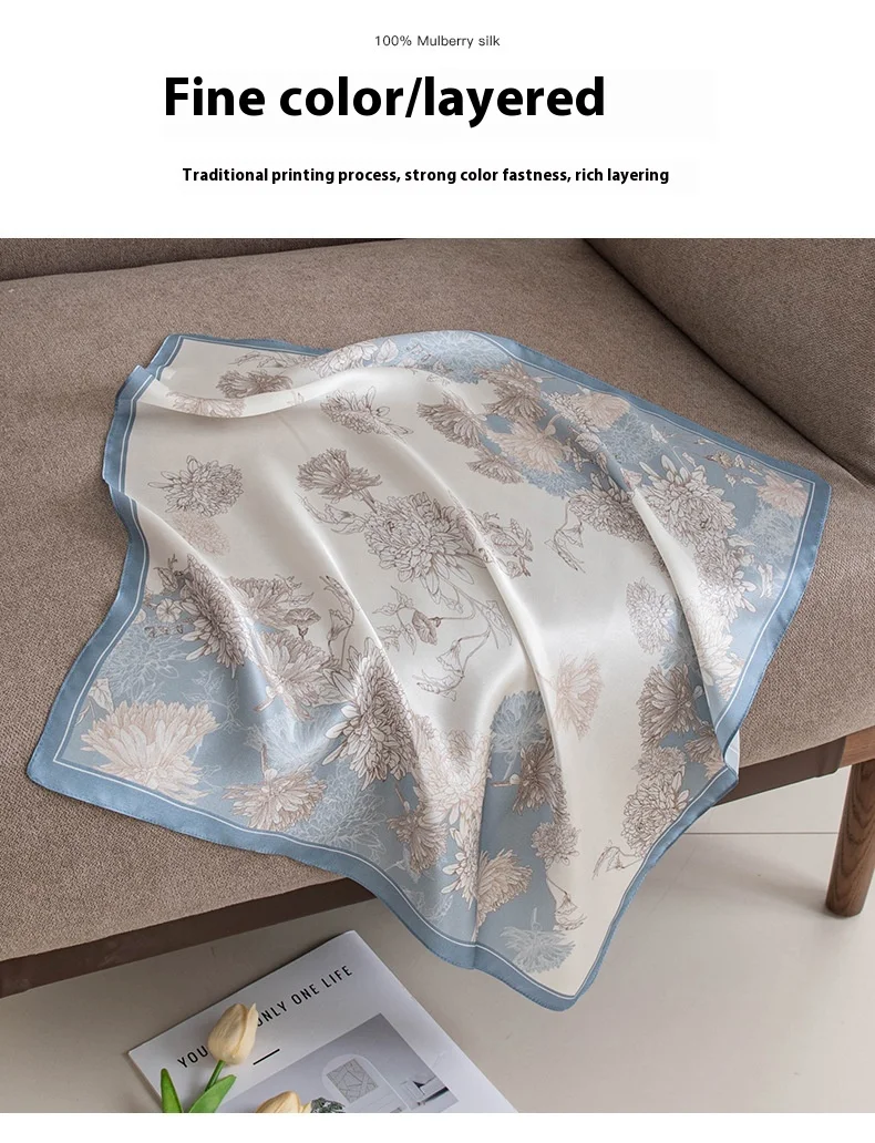 53Cm spring and summer new temperament women's 100% mulberry silk printed silk scarf fashion versatile high-end scarf shawl