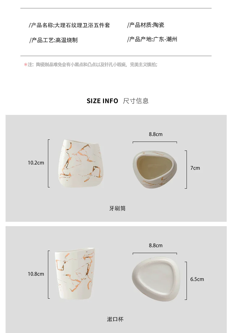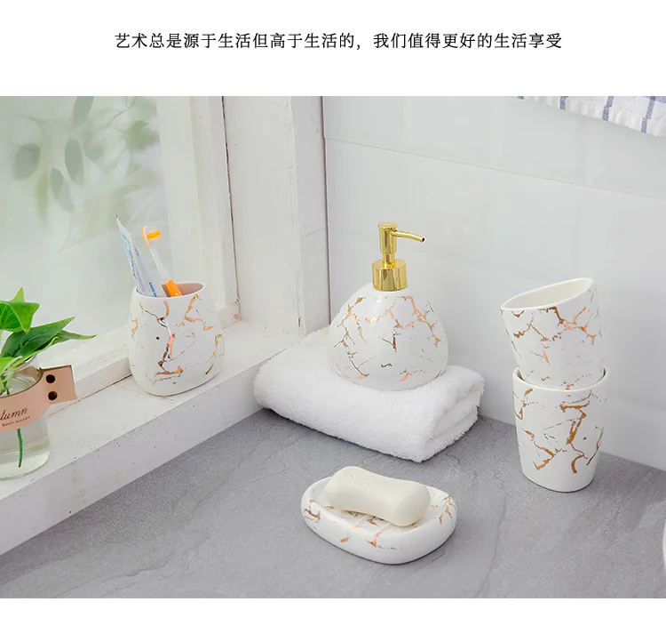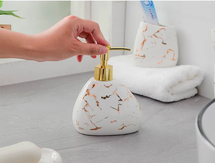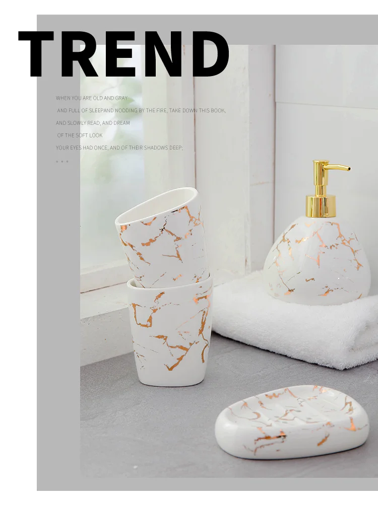6/7pcs set Gold marble ceramics Bathroom Accessories Set Soap Dispenser/Toothbrush Holder/Tumbler/Soap Dish Bathroom Products