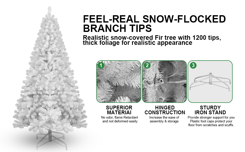 Transform your holiday decor with the ultimate festive showstopper! 🎄 What it is - Our 7.5ft PVC White Christmas Tree is the perfect centerpiece for your Christmas celebrations. Crafted from environmentally friendly materials, this stunning, fireproof artificial tree provides a safe and beautiful option for holiday decorating. 🌟 Why you need it: - Create a magical winter wonderland in your home. - Enjoy a versatile, classic look that complements any decor theme. - Simplify your holiday setup with a hassle-free tree that requires no watering or shedding. ❤️ Why you love it: - Sturdy and fireproof, ensuring a safe holiday experience. - Lush branches that provide a full, lifelike appearance. - Easy to assemble and disassemble, making it perfect for storage and on-the-go decorating. Set up your holiday showpiece in just a few minutes—simply connect the individual branches and fluff the foliage for that perfect look. Don't miss out on this exclusive holiday essential! Hurry, stock is limited. Elevate your Christmas spirit with our premium 7.5ft White Christmas Tree today!
