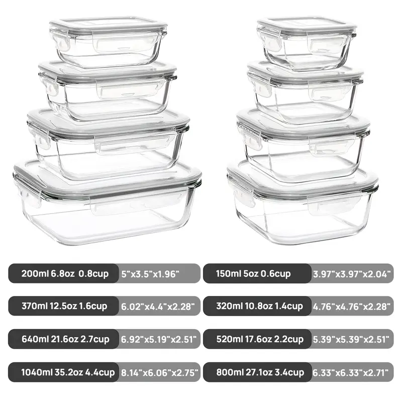 Elevate your kitchen organization with our exclusive 8-piece BPA-Free Glass Food Storage Container Set! Why you'll love it: - 100% Leak-Proof Airtight Lids for Mess-Free Storage. - Versatile Sizes Perfect for Meal Prep and Leftovers. - Durable Borosilicate Glass Safe for Oven, Microwave, and Freezer. - BPA-Free Material Keeps Food Fresh and Healthy. - Stackable Design for Space-Saving Convenience. Crafted from high-quality borosilicate glass, these containers are ideal for storing everything from meals to sauces. With a variety of sizes including large and small rectangles and squares, you'll always find the perfect fit for your food storage needs. To use, simply store your meals, seal with the airtight lid, and place in the refrigerator, microwave, or oven as needed. When you’re done, they can be stacked neatly to save space in your cabinets. Transform how you store food and enjoy freshness with these premium containers! Perfect for meal prep enthusiasts and busy families. Limited time offer — upgrade your kitchen now!