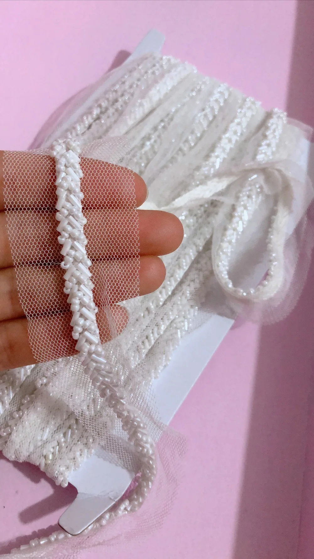90cm Beaded Lace Ribbon Garment Sewing Accessories Trimmings For Clothing Dress Collar Cuff DIY Crafts Needlework Applique
