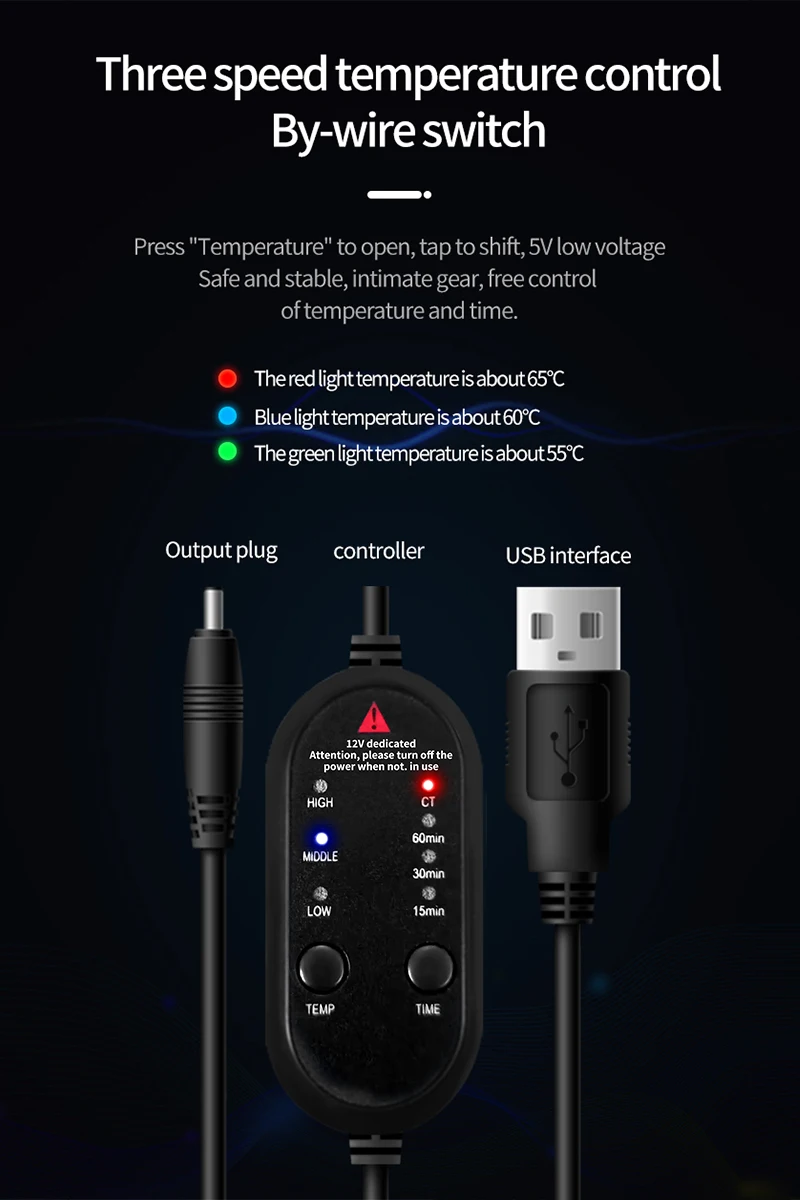 Heating Temperature: 3-Level Adjustment,Red 65℃, Blue 55℃, Green 45℃