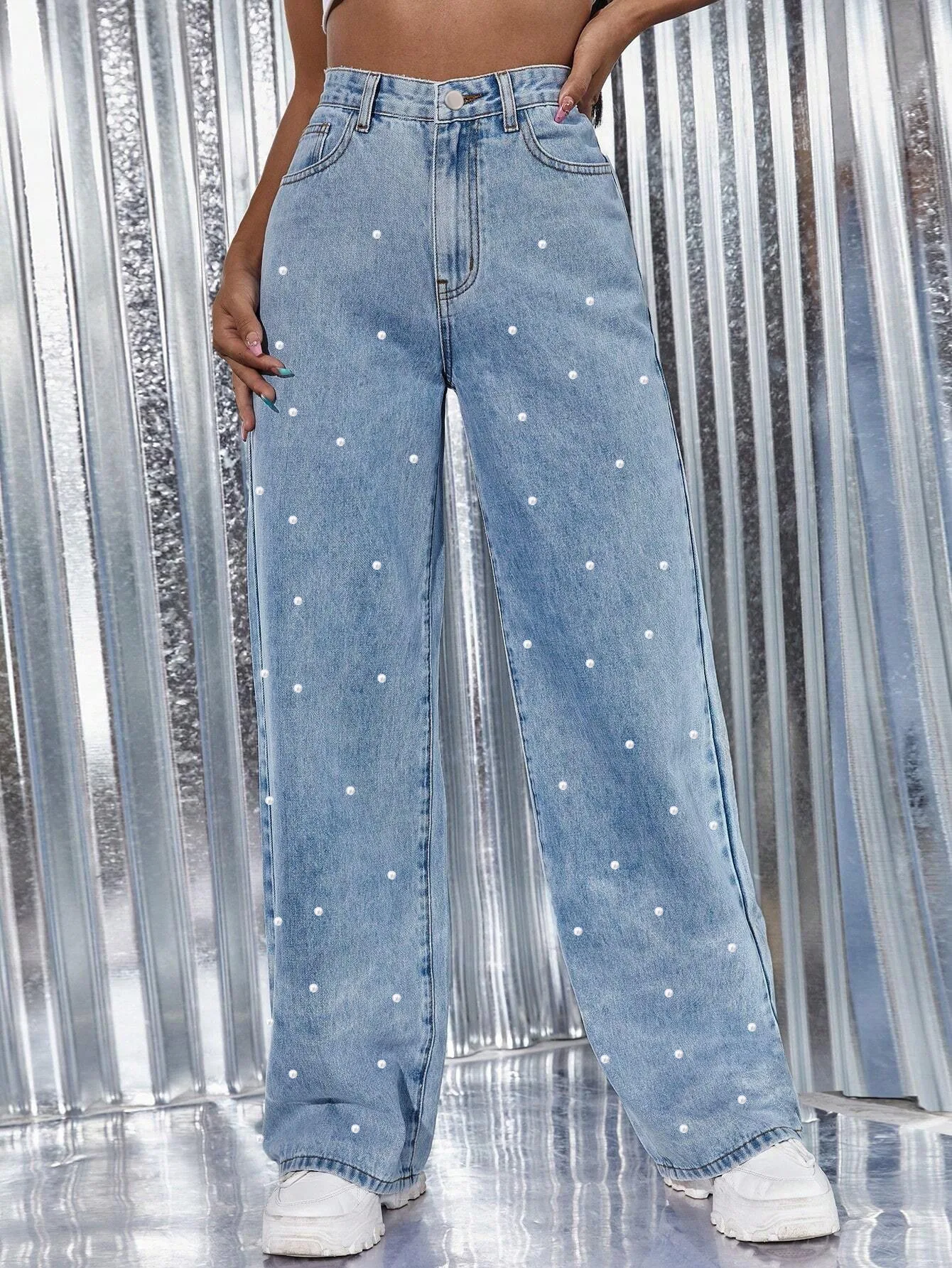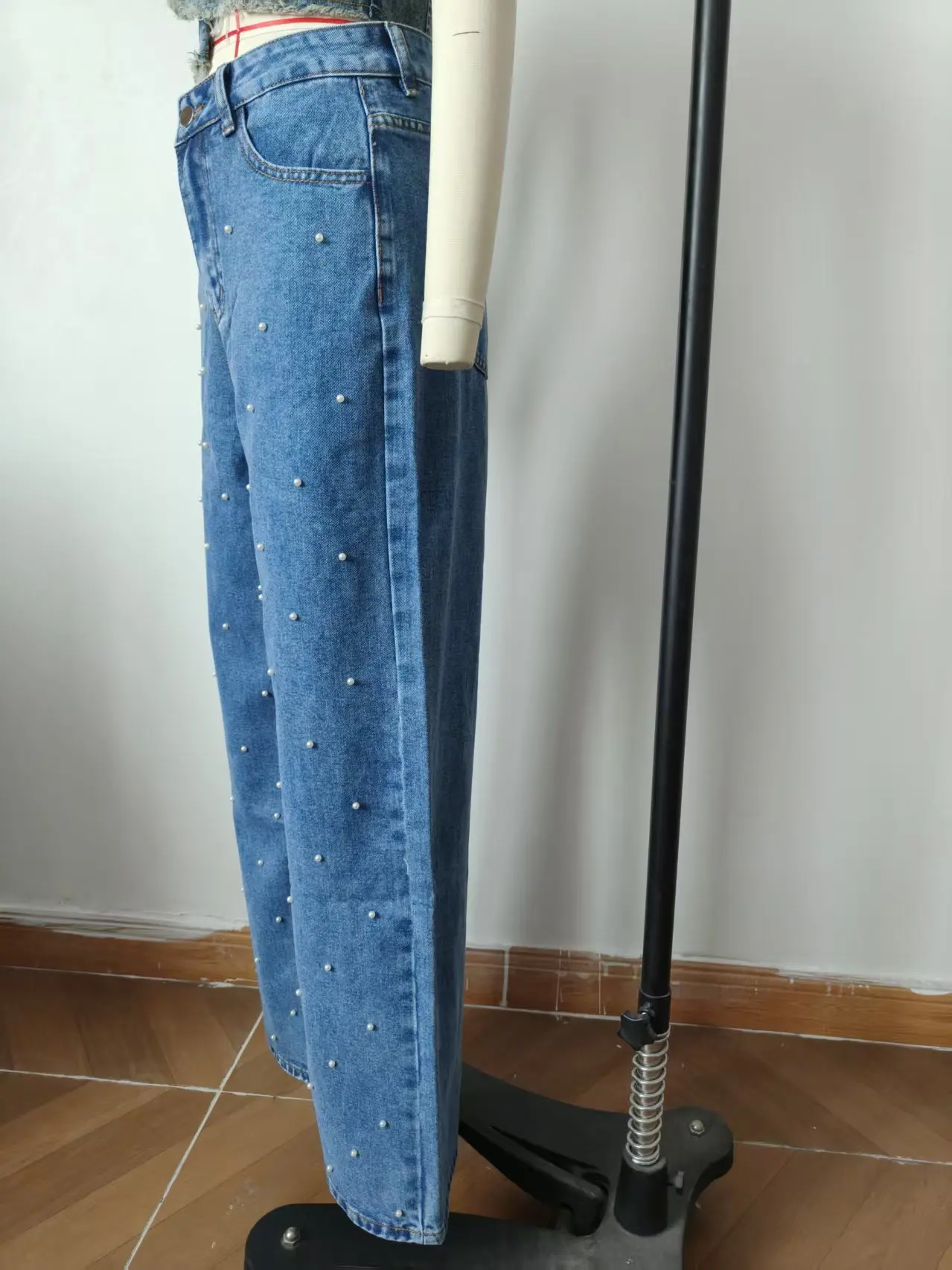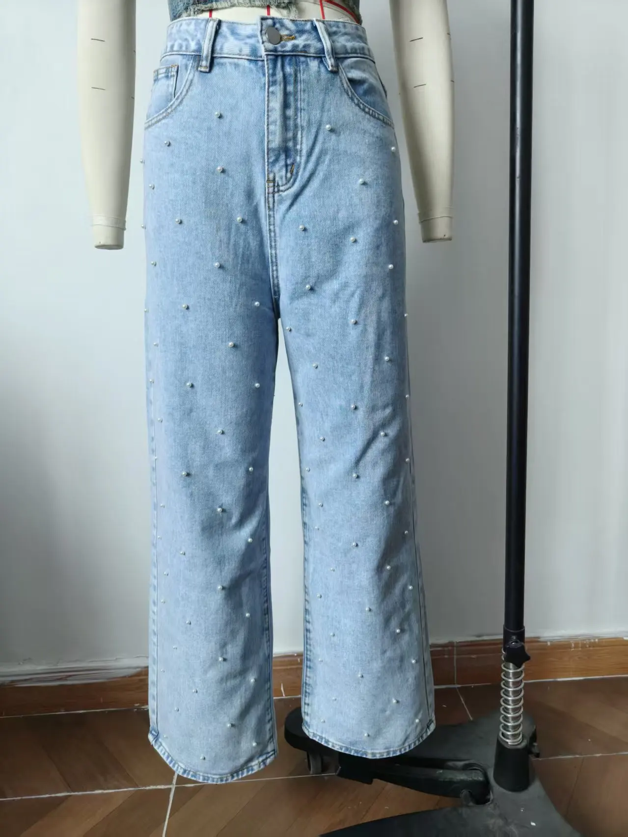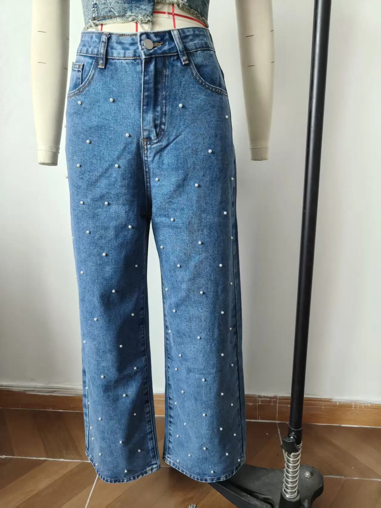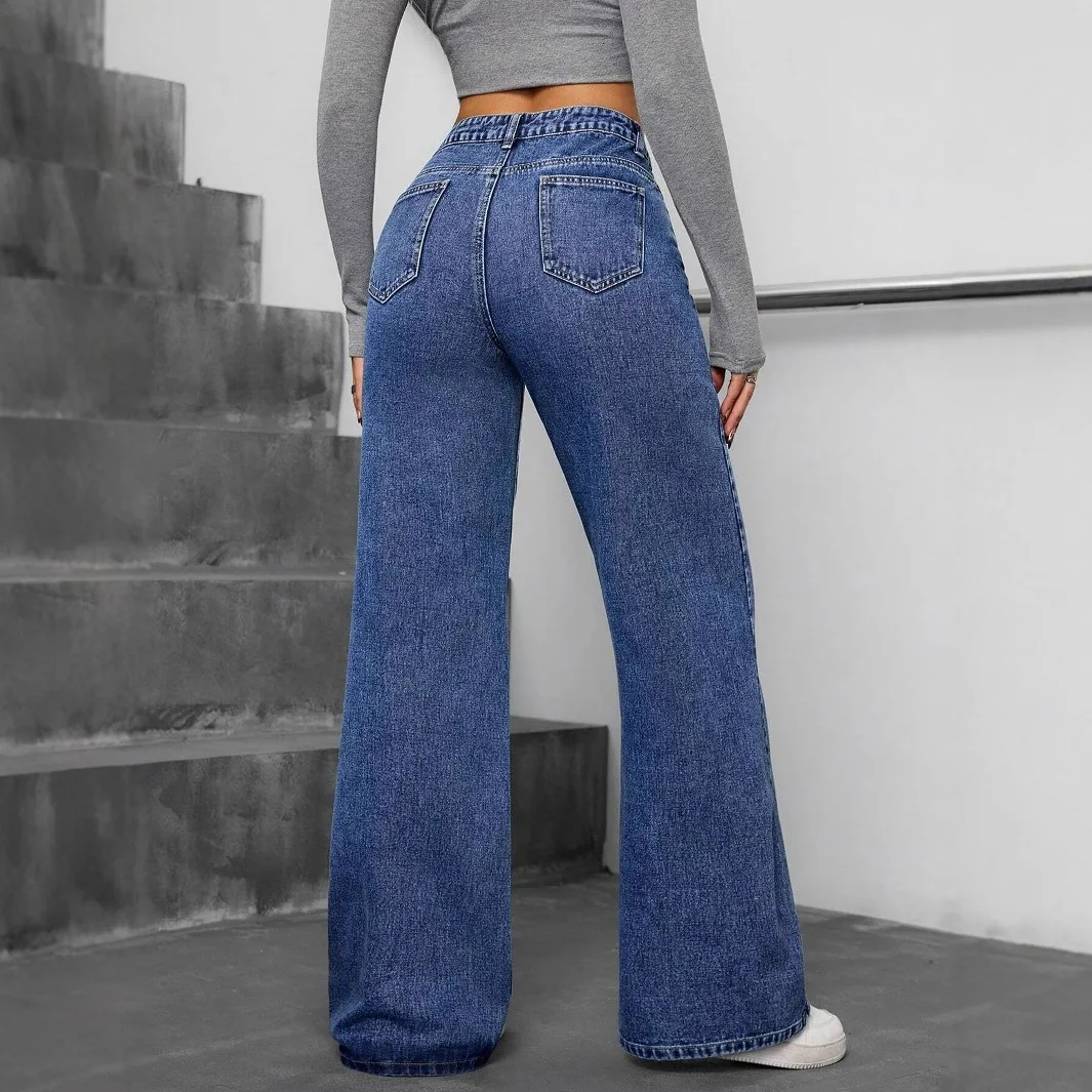 American Style Jeans Pearl High Waisted Straight Leg Pants Fashionable Versatile Women's Casual Jeans Spring Autumn New 2025