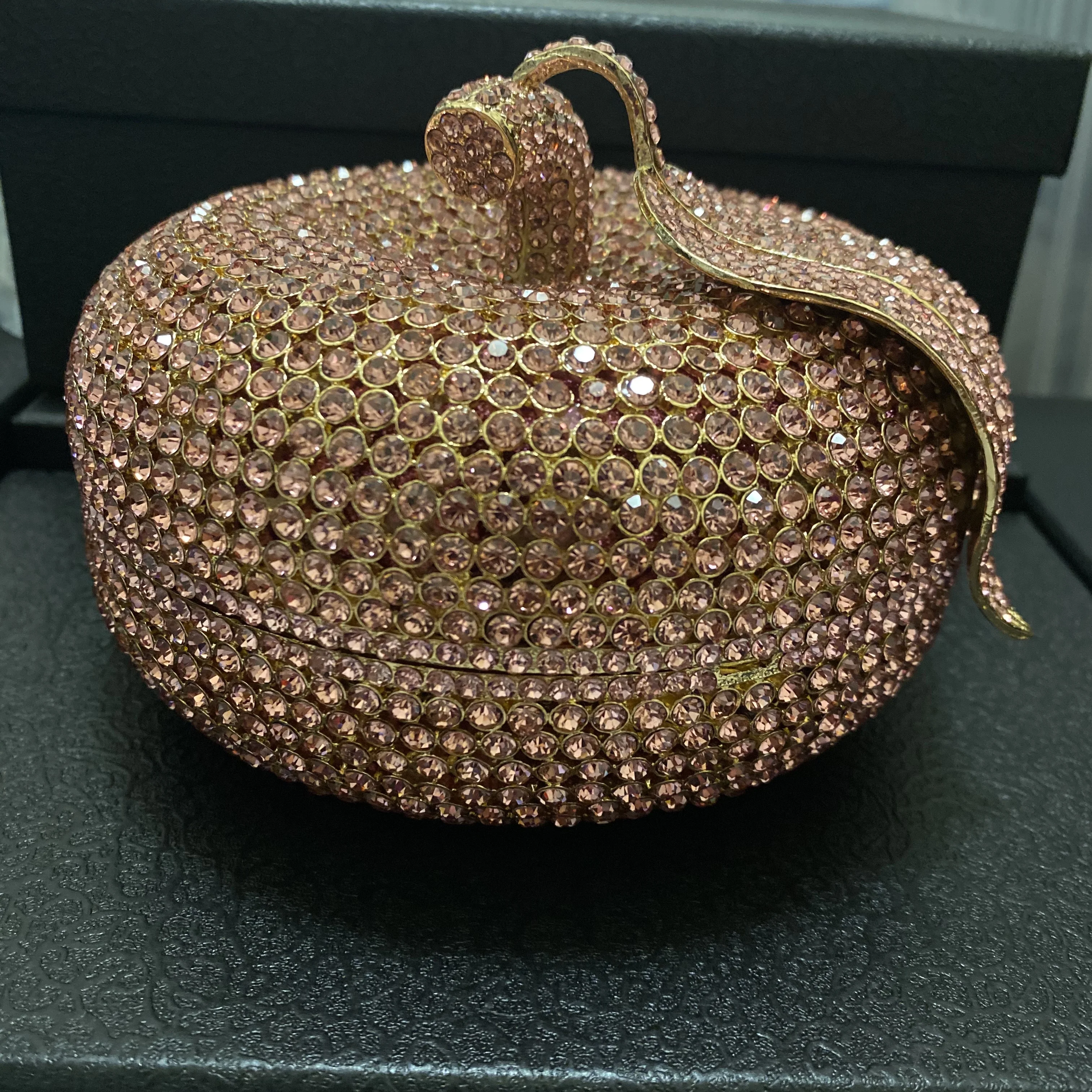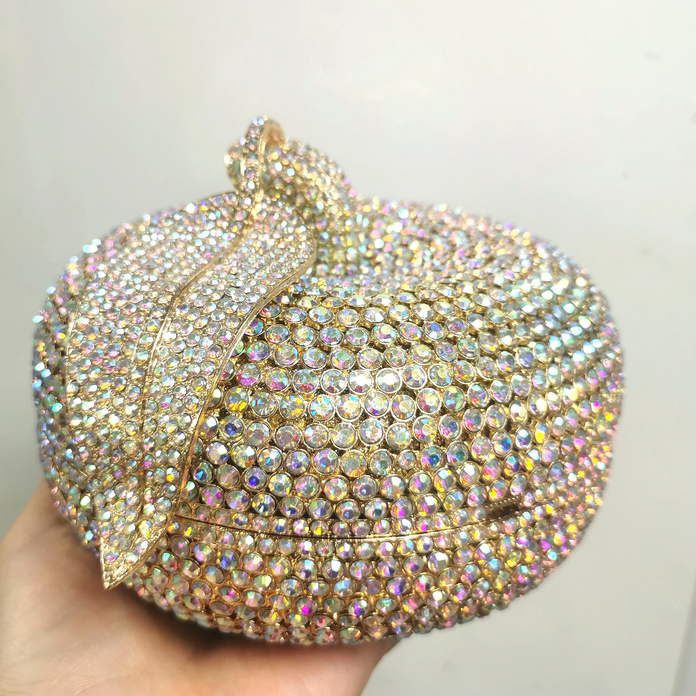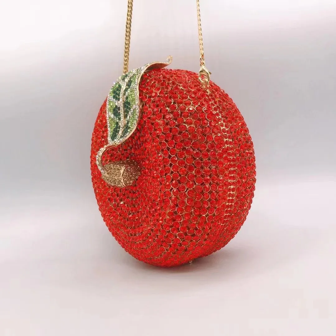 Apple Pattern Rhinestone Evening Leaves Bag Luxury Clutch Women Diamond Cocktail Clutches Lady Gold/Silver Purse And Handbag