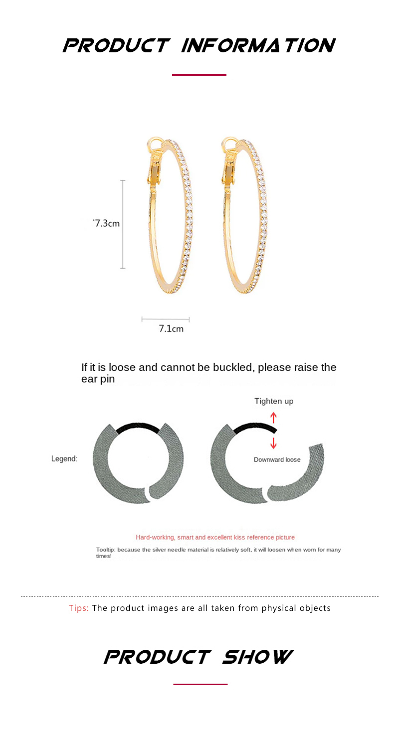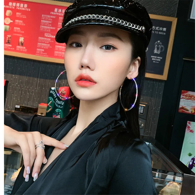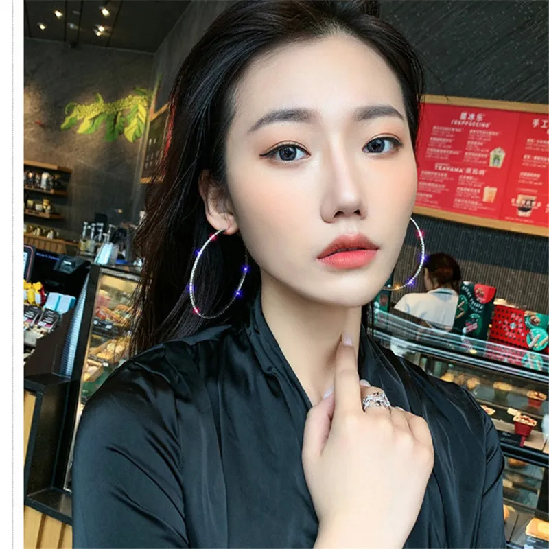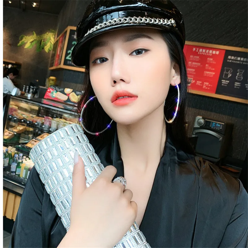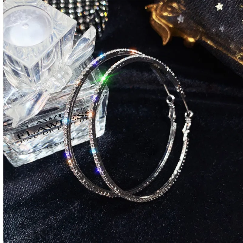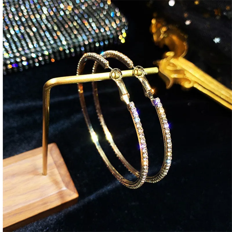 Big Round Crystal Hoop Earrings for Women Bijoux Geometric Rhinestone Earrings Statement Jewelry Gifts
