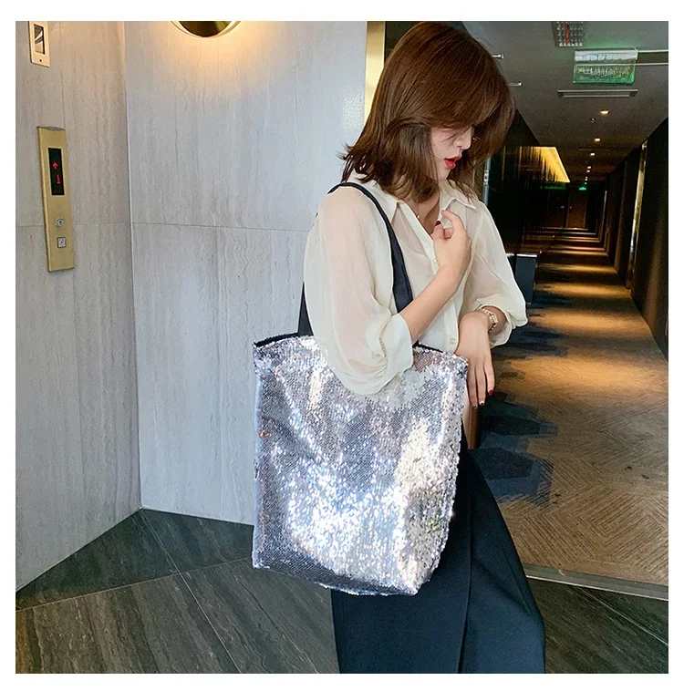 Bling Sequin Sac Femme High Capacity Tote Bag Portable Shopper Bolso Hot Sale Popular Hand Bags for Woman Bolsos Mujer