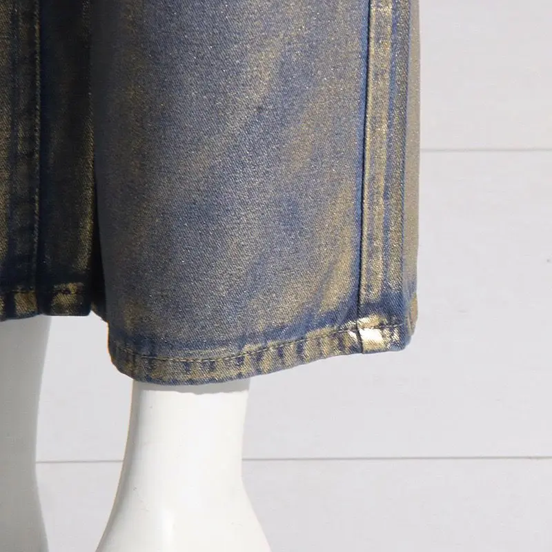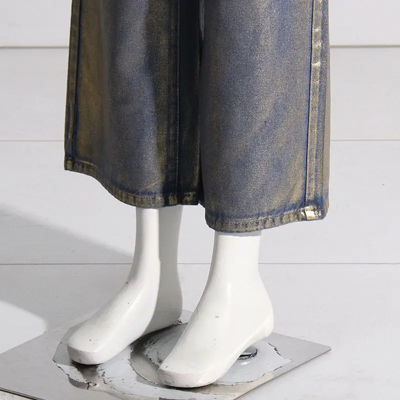 Bronzing Design Straight Jeans Spring and Summer High Waist Loose New Thin Retro Trend Drag High Pants High Appearance Level