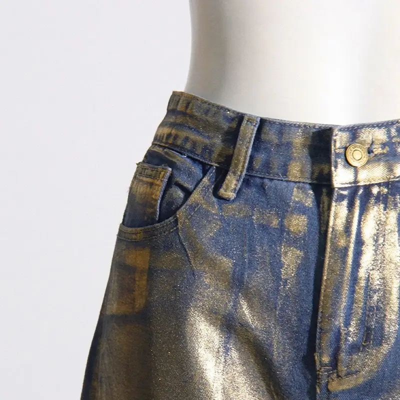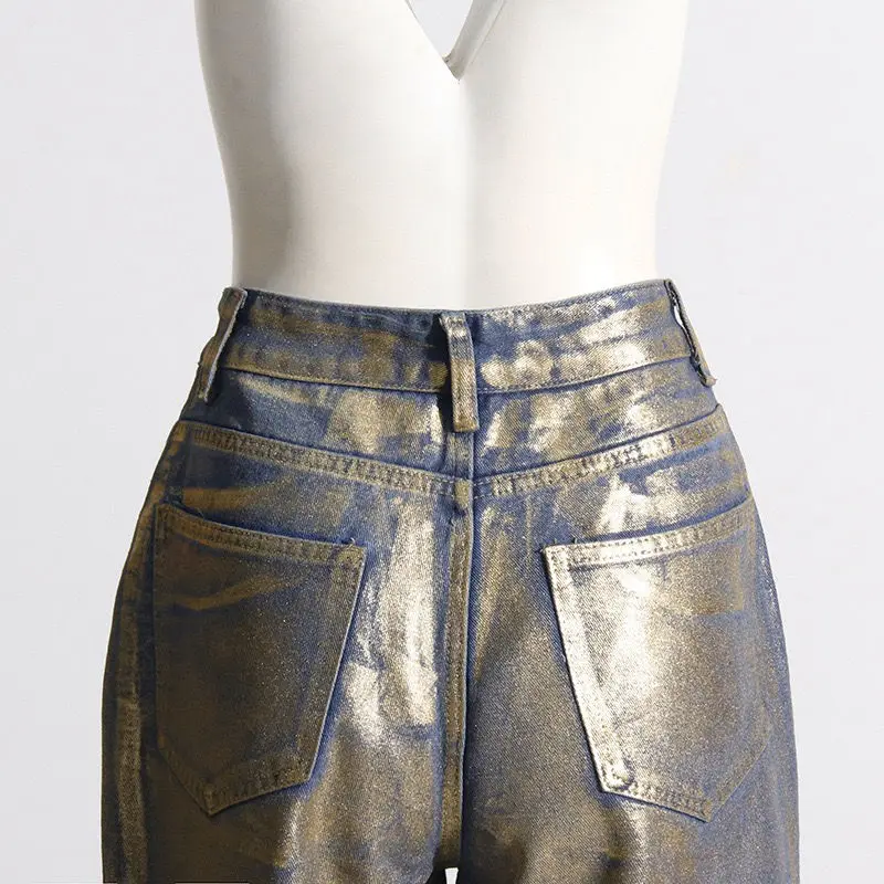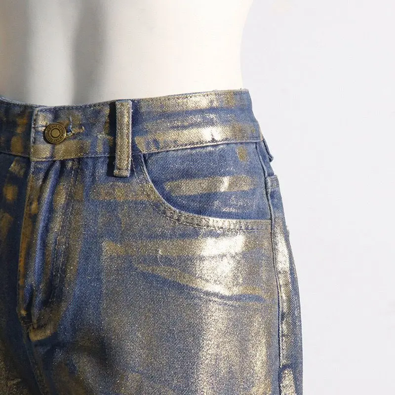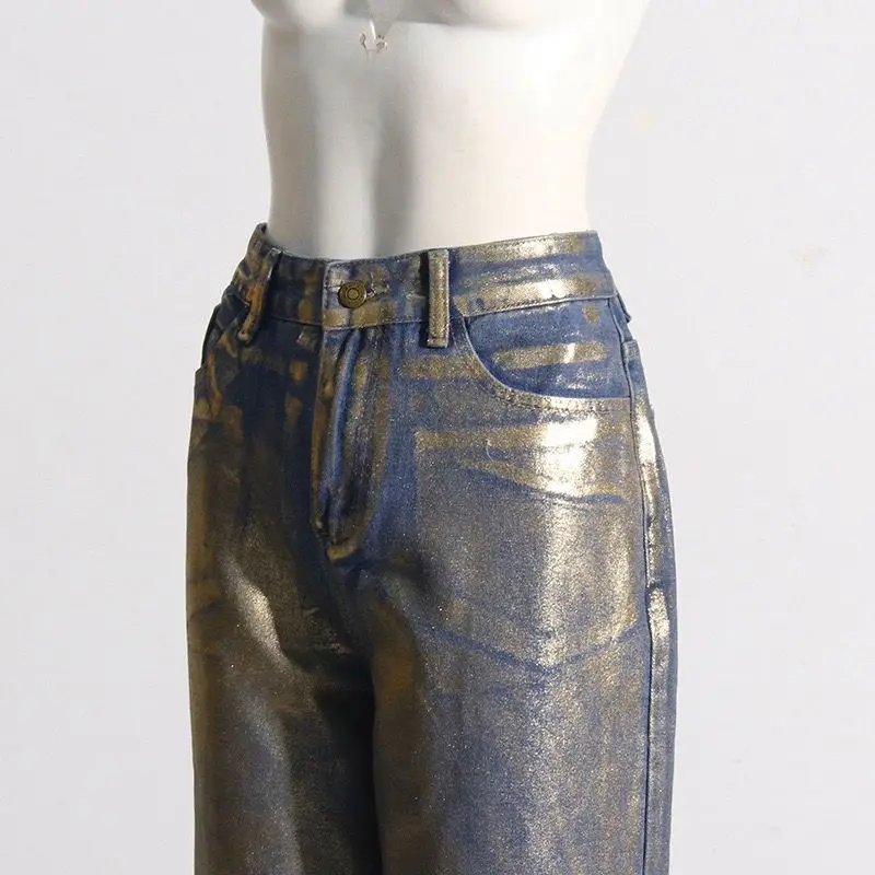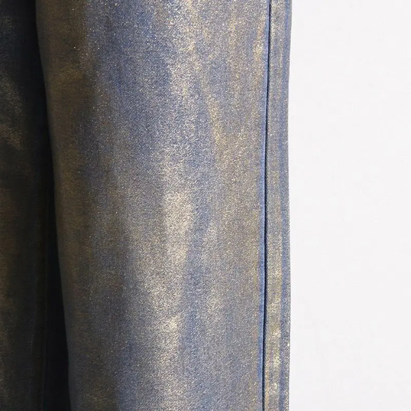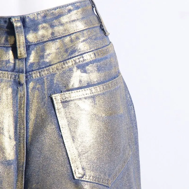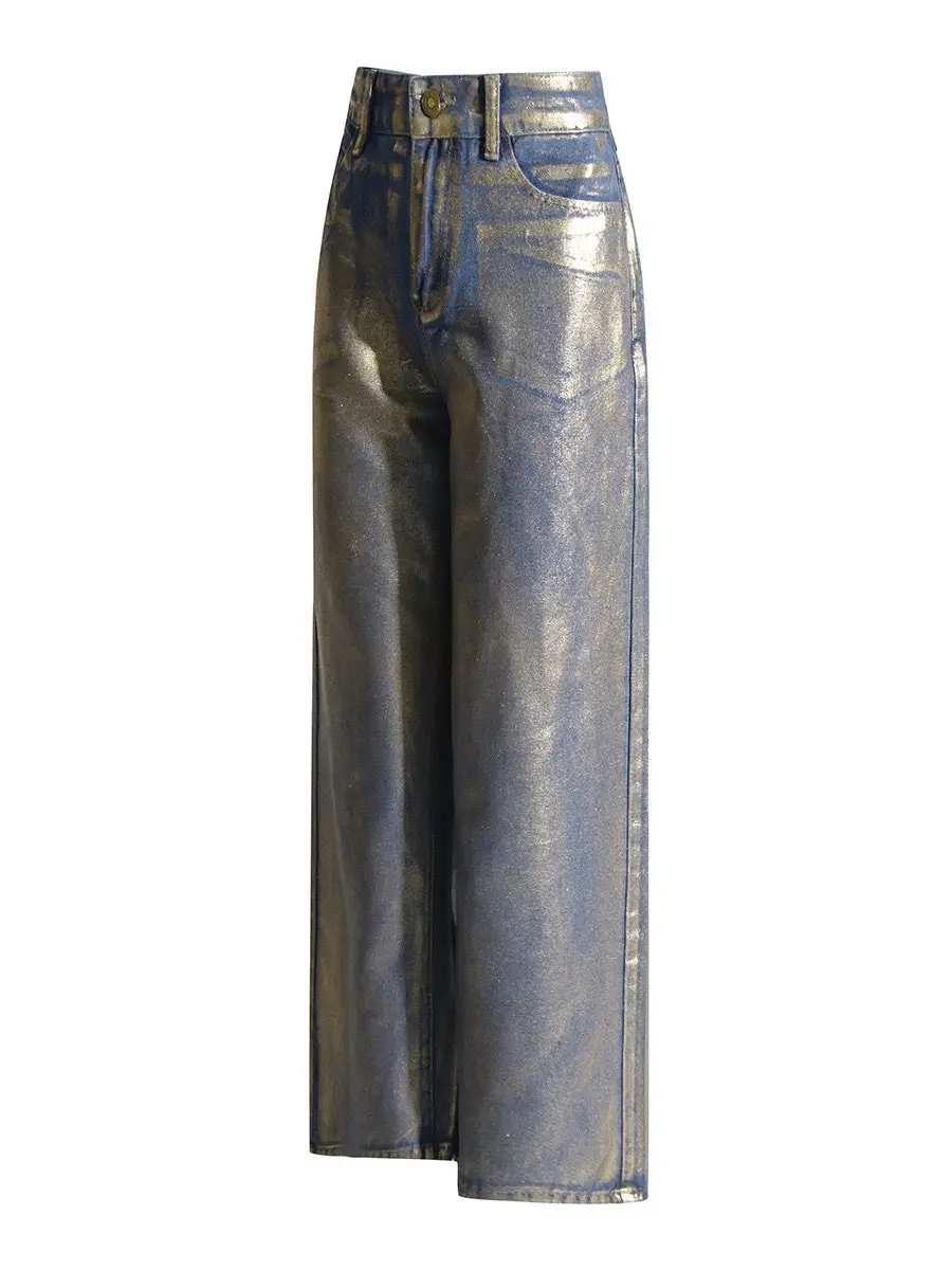 Bronzing design straight jeans spring and summer high waist loose new thin retro trend drag high pants