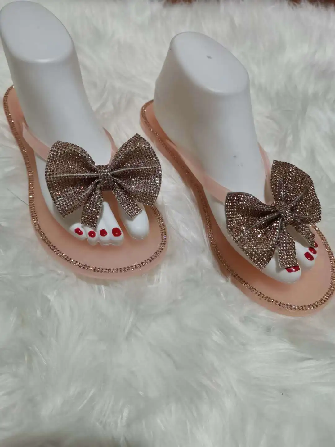 🌸 What is it - These chic sandals feature a shimmering bow knot design adorned with eye-catching rhinestones, making them the perfect accessory for any summer outfit.