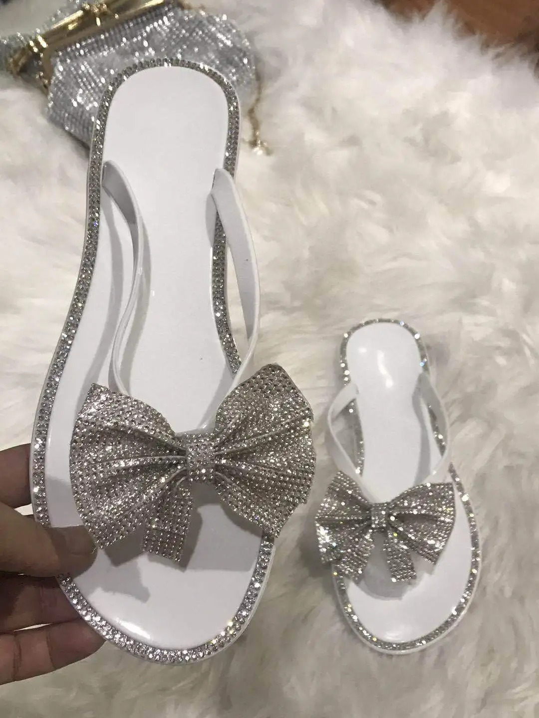 Rhinestone Bow Women's Flip Flops - Summer Style