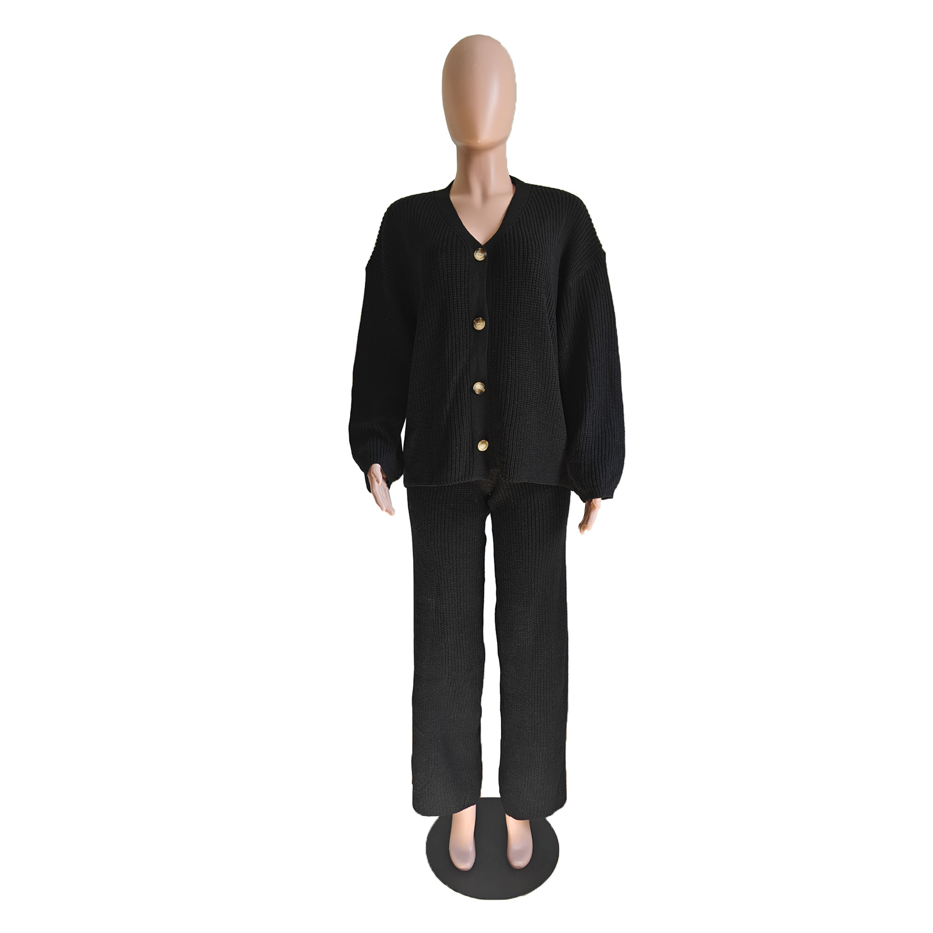 CM.YAYA Women's Set Knitted Full Sleeve Button Sweater + Wide Leg Pants 2024 Fall Two 2 Piece Set Outfit Street Winter Tracksuit