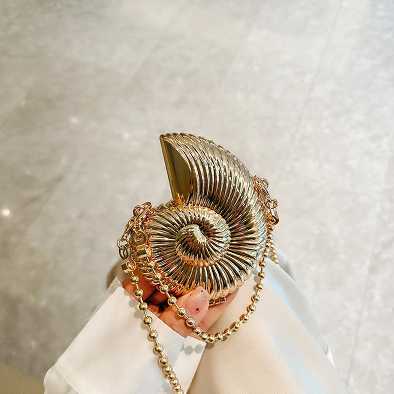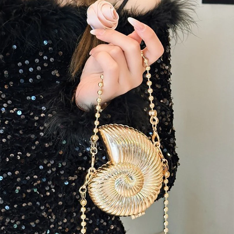 Creative Conch Shape Gold Purse For Women Silver Acrylic Box Bag Exquisite Brand Hand-held Evening Bag Shoulder Messenger Bag