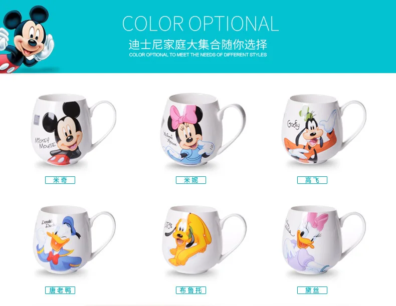 Disney Cartoon 100th anniversary Mickey Mouse Action Figures drink cup Minnie Ceramic Cups Milk Handle Coffee Mug