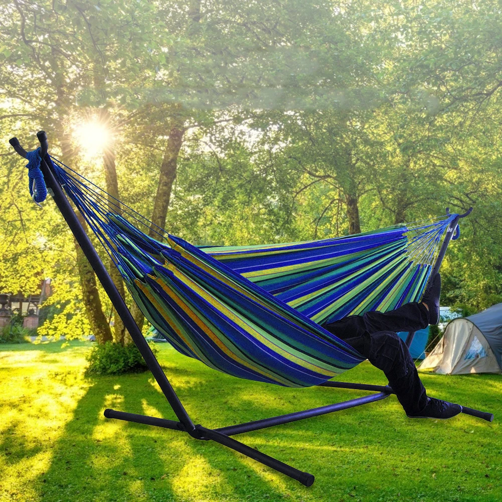 Double Hammock w/Stand, 2-People Hammock & Stand Set w/Storage Bag & Carrying Bag, Outdoor/Indoor Heavy-Duty Portable Hammock