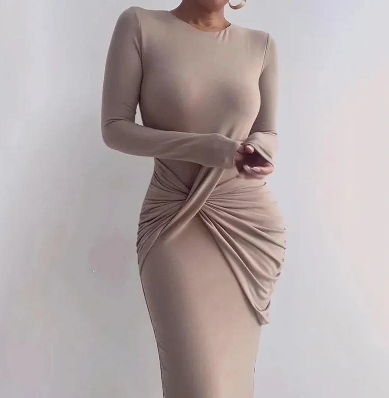 Classic Dresses for Women New Autumn High Waist Bow Sexy Fold Maxi Dress Long Sleeve Slim Fit Sexy Elegant Wrap Hip Dress for Women