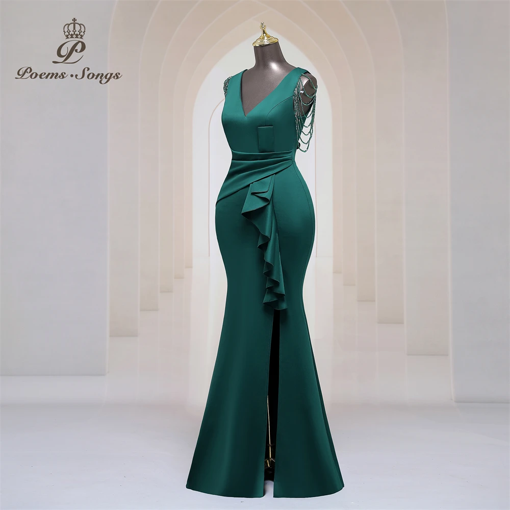 - Premium Quality Evening Dress with Sexy Shoulder Beading.