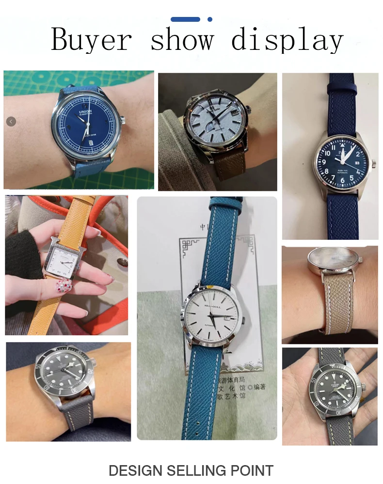 Epsom Palm Printed Leather Strap Genuine Cowhide Watch Strap Handmade Blue Yellow Brown Brown Mens Ladies Watch Bracelet