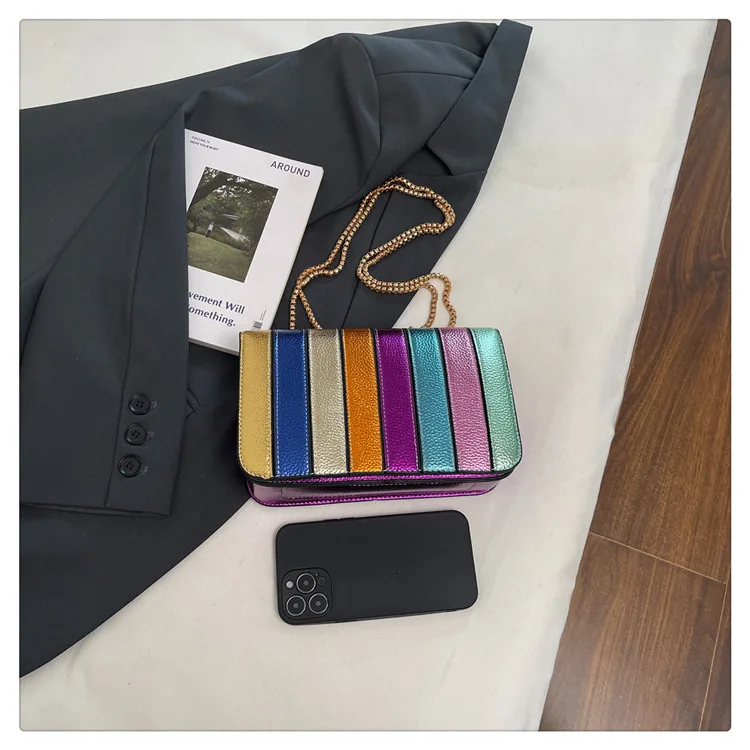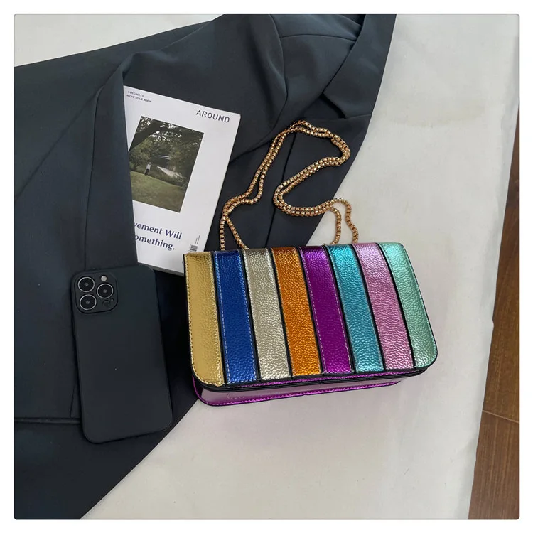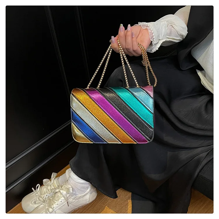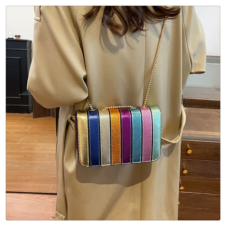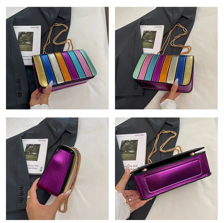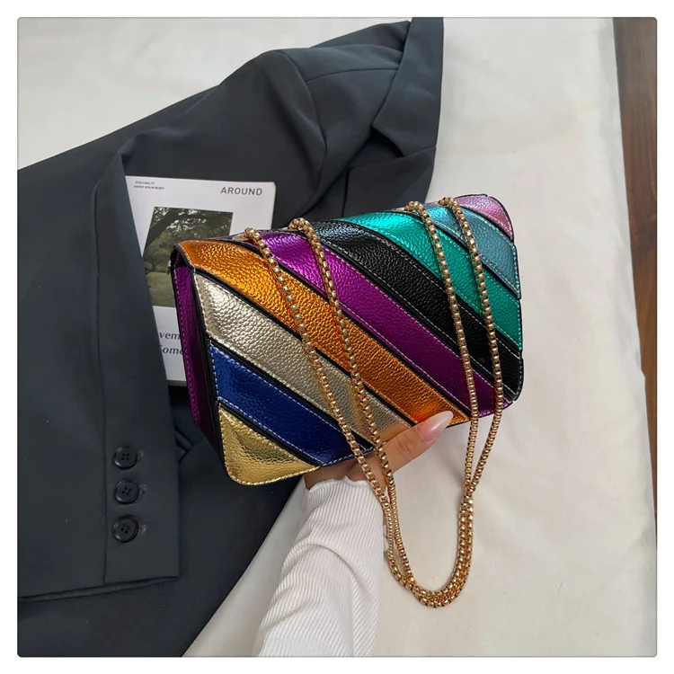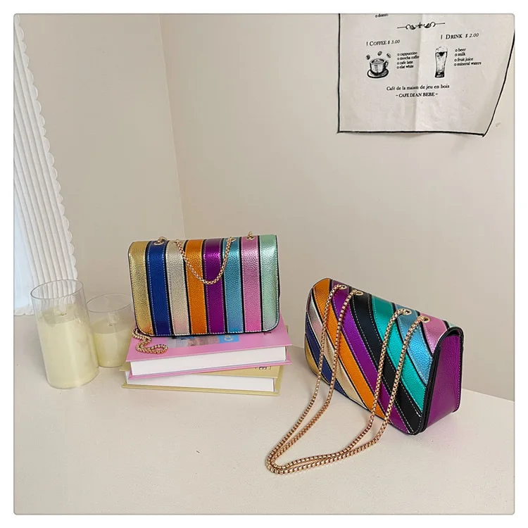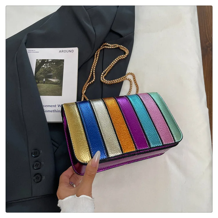 Evening Square Bags for Women 2025 New Fashion Leather Striped Crossbody Bag Luxury Chain Party Casual Chic Shoulder Bag Woman