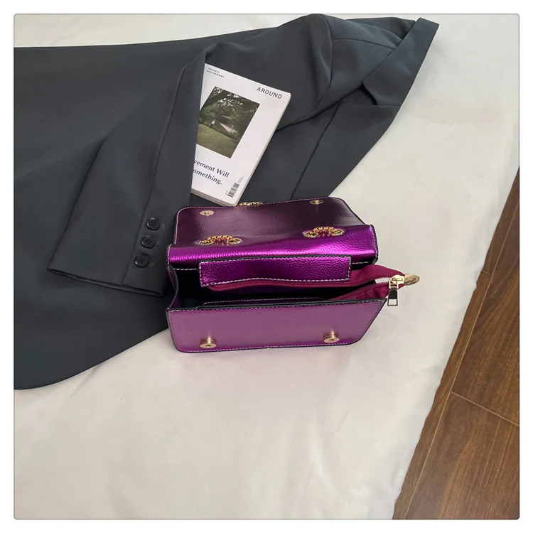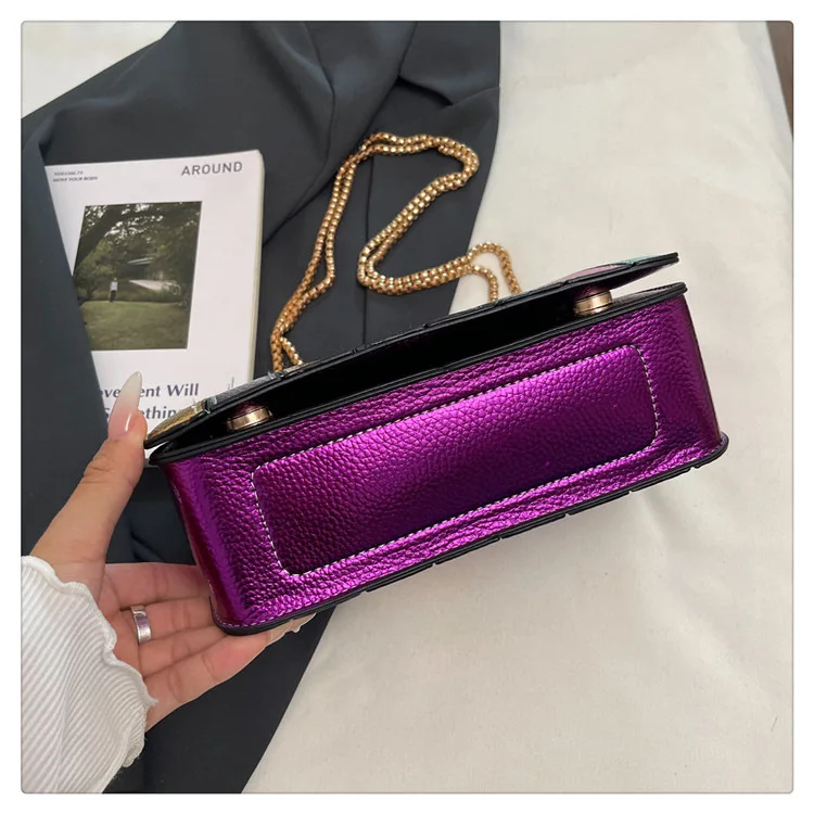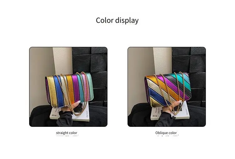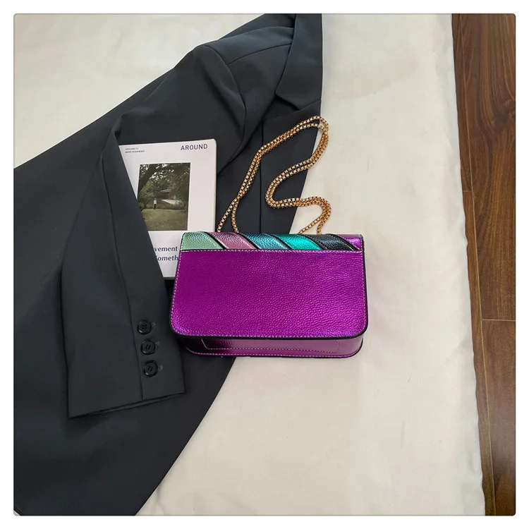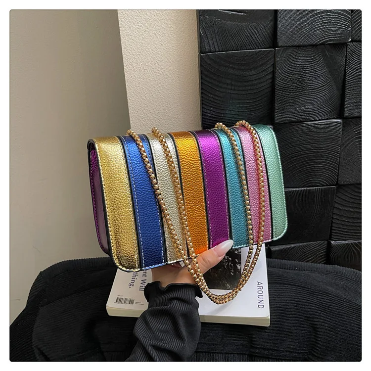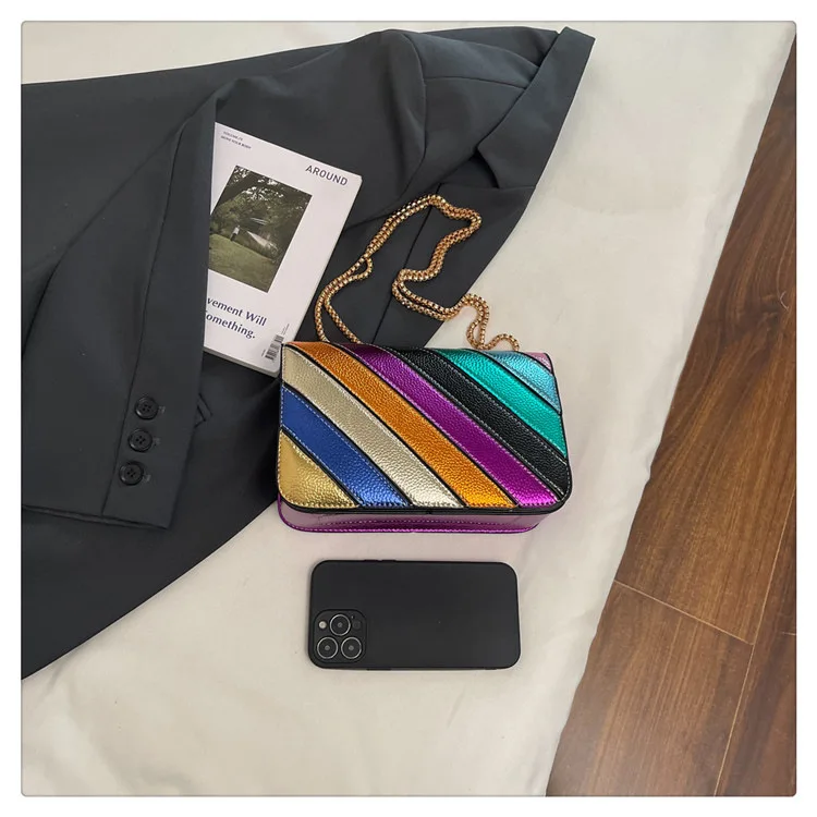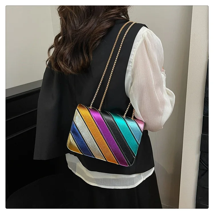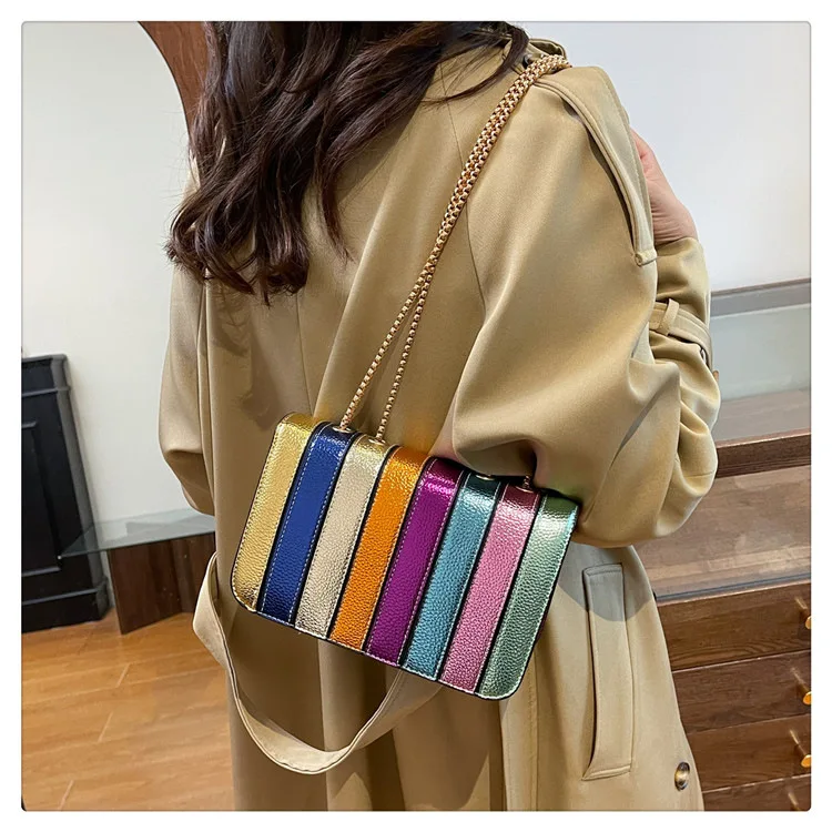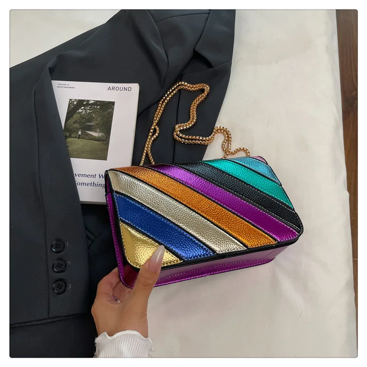 Evening Square Bags for Women 2025 New Fashion Leather Striped Crossbody Bag Luxury Chain Party Casual Chic Shoulder Bag Woman
