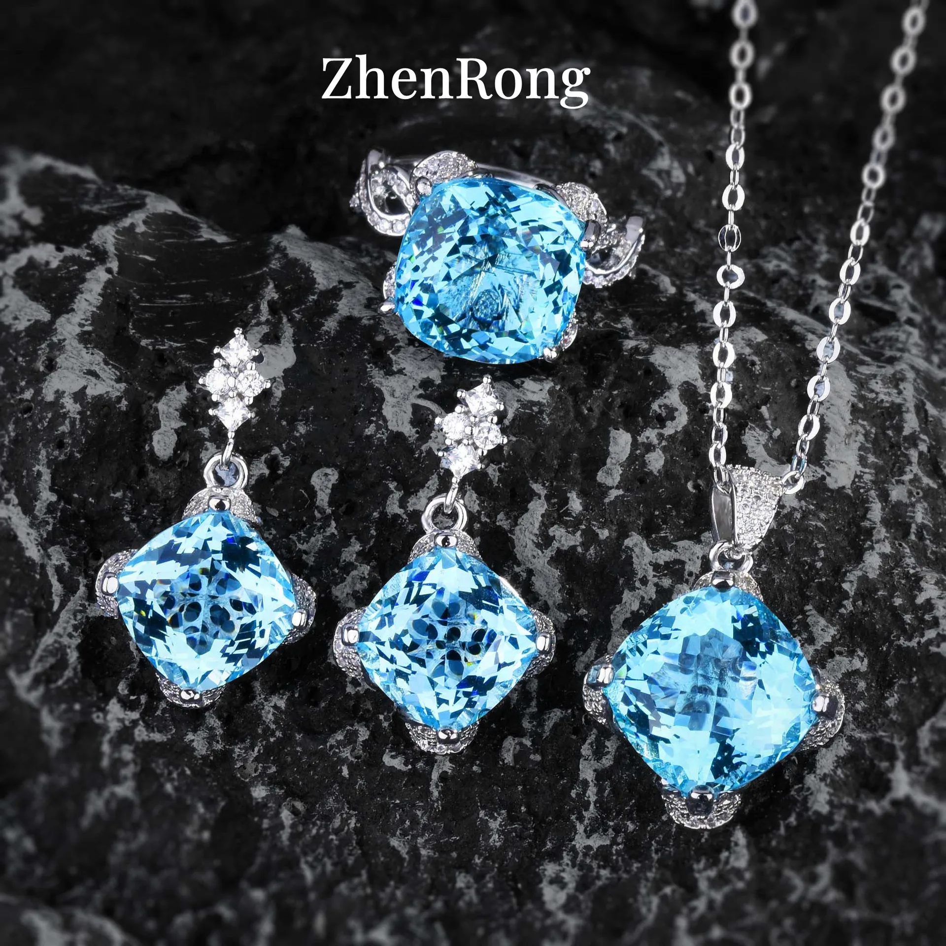 MAIN STONE SIZE: Ring/Pendant14*14mm,Earring12*12mm