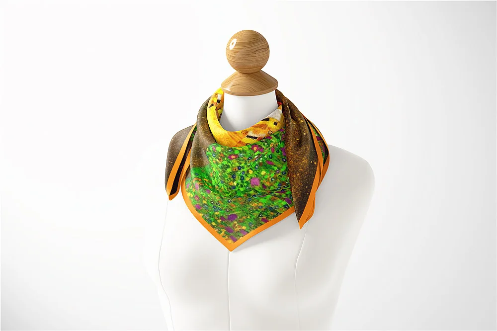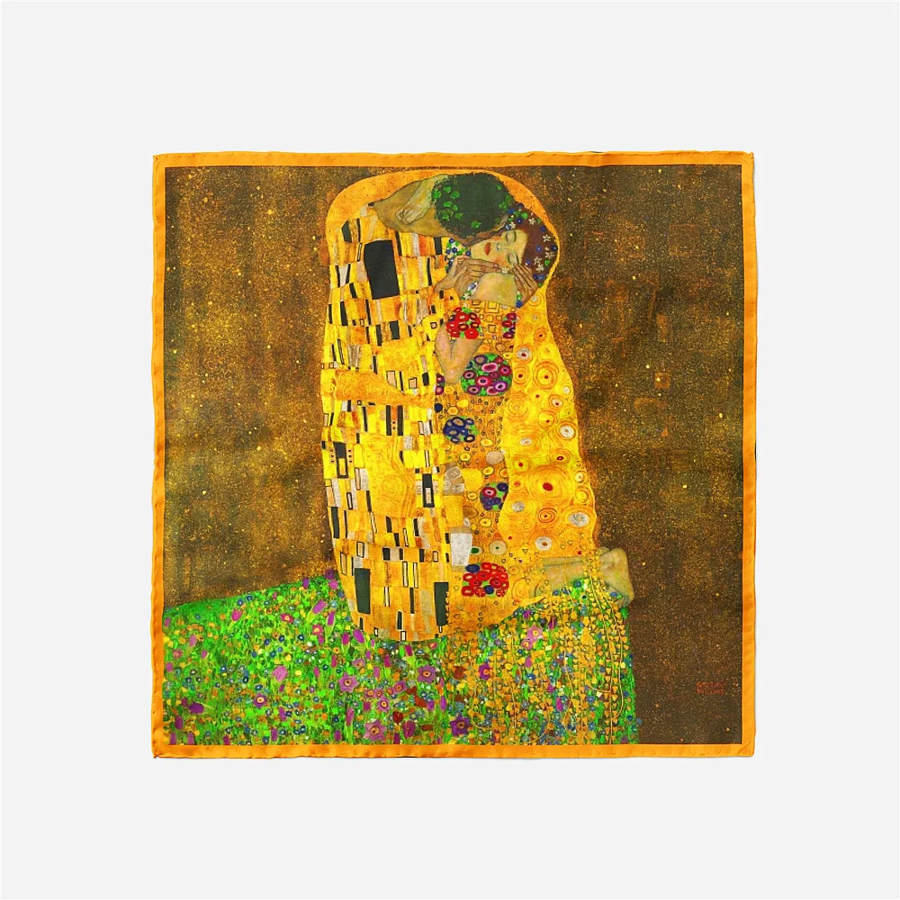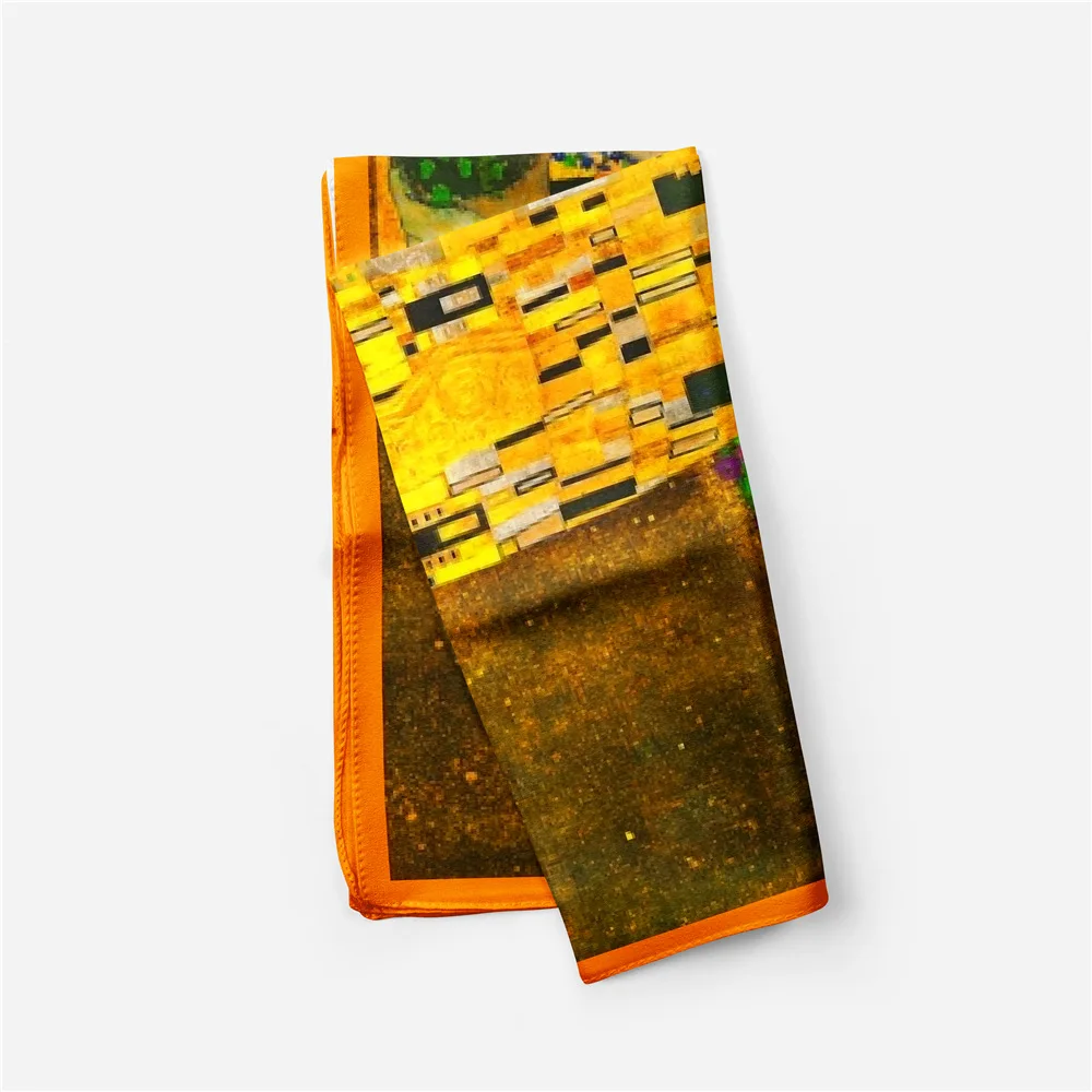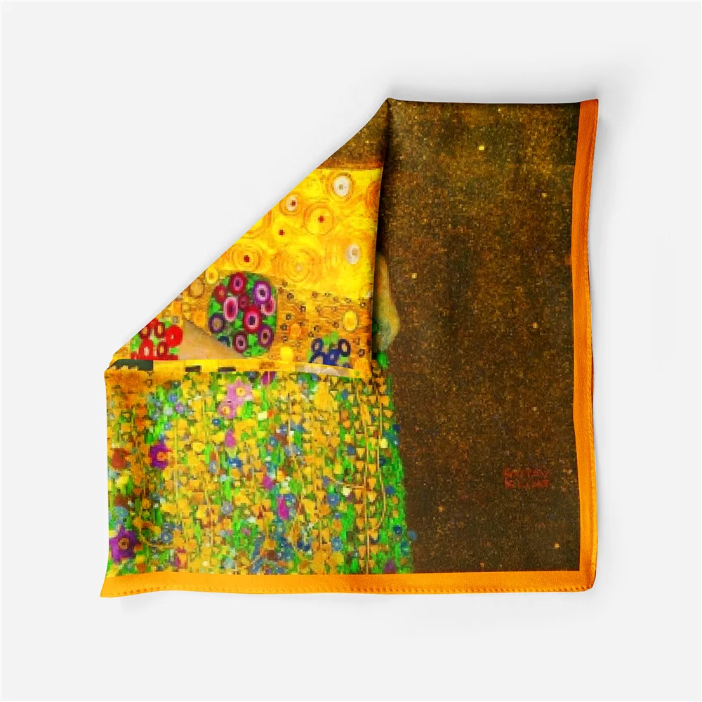 Famous Oil Painting Twill 100% Silk Scarf Fashion Bandana Women Scarf Wraps 53cm Square Scarves Hijab Head Scarf Neckerchief