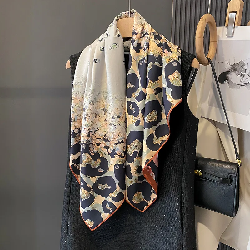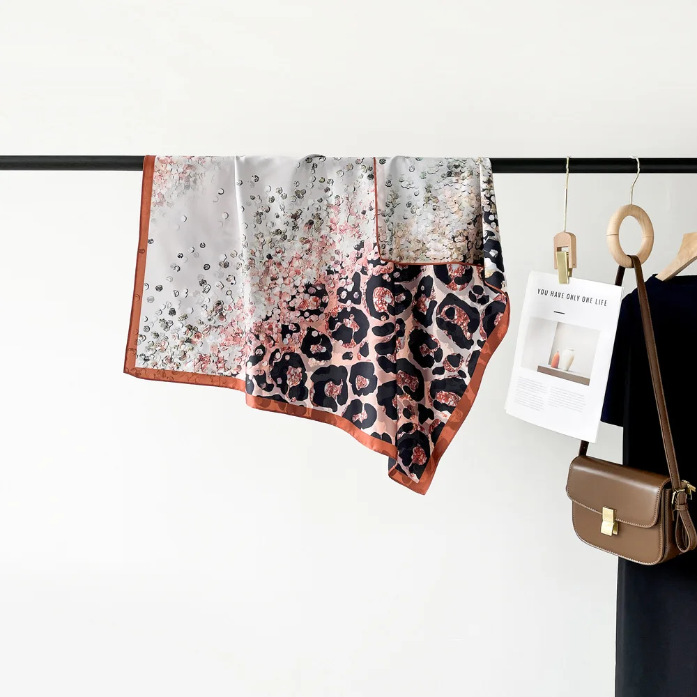 Fashion Leopard Pattern 90*90CM Double Sided Imitation Silk Scarves Women Flower Print Silk Square Scarf Shawl Neckerchief