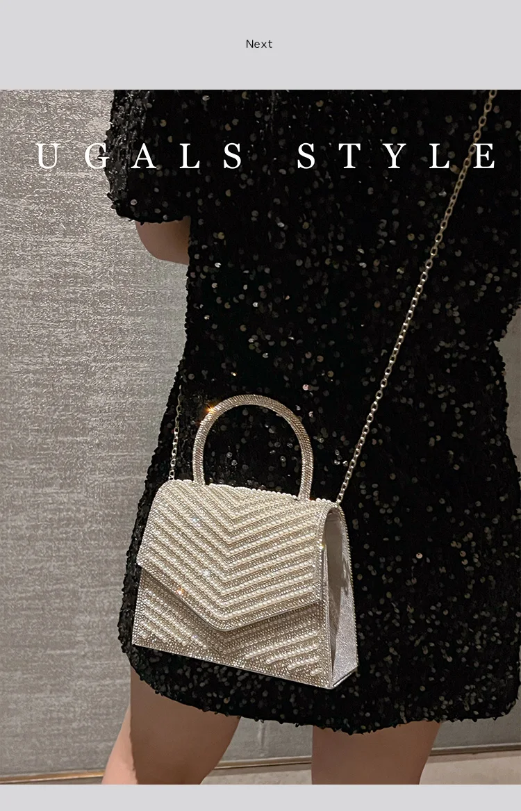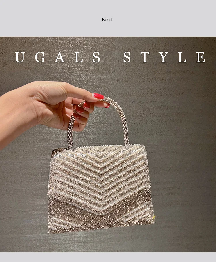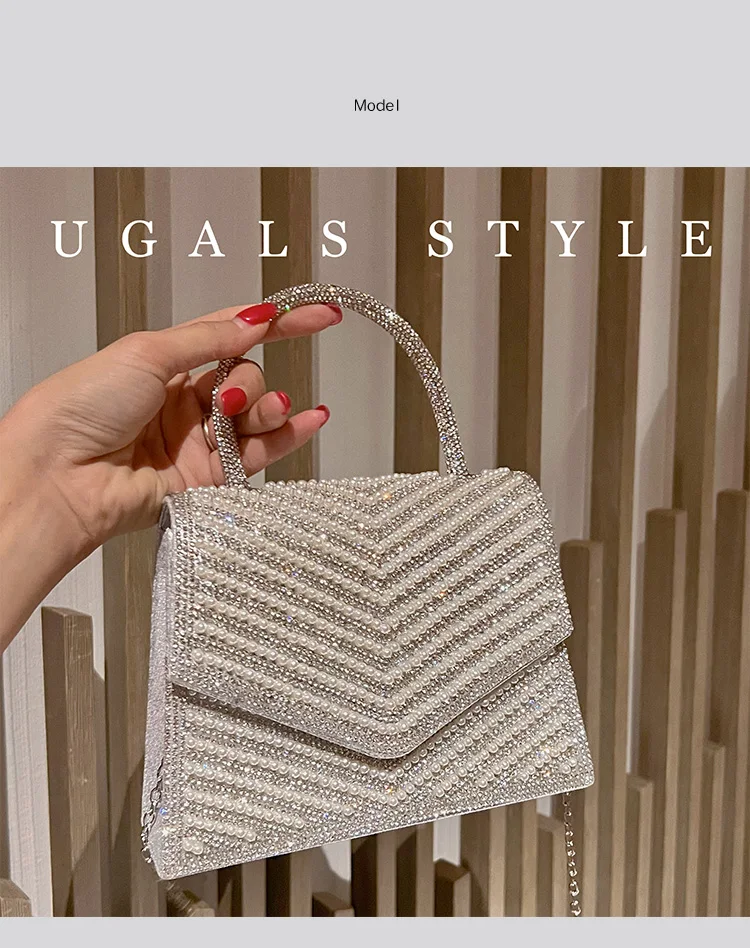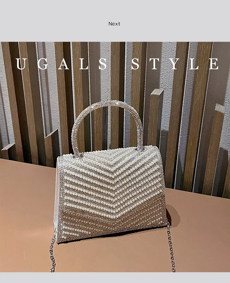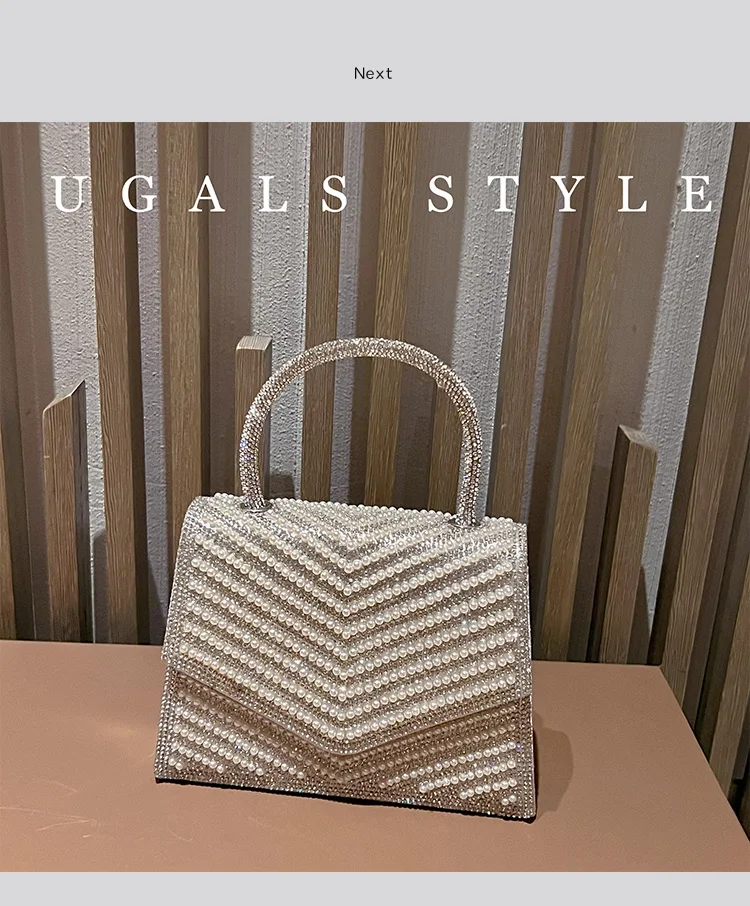 Fashion Pearl Beaded Women's Handbag Glitter Rhinestones Diamond Evening Bag Wedding Party Clutch Purse Shoulder Messenger Bag
