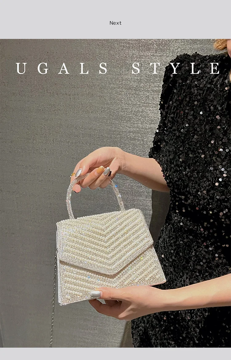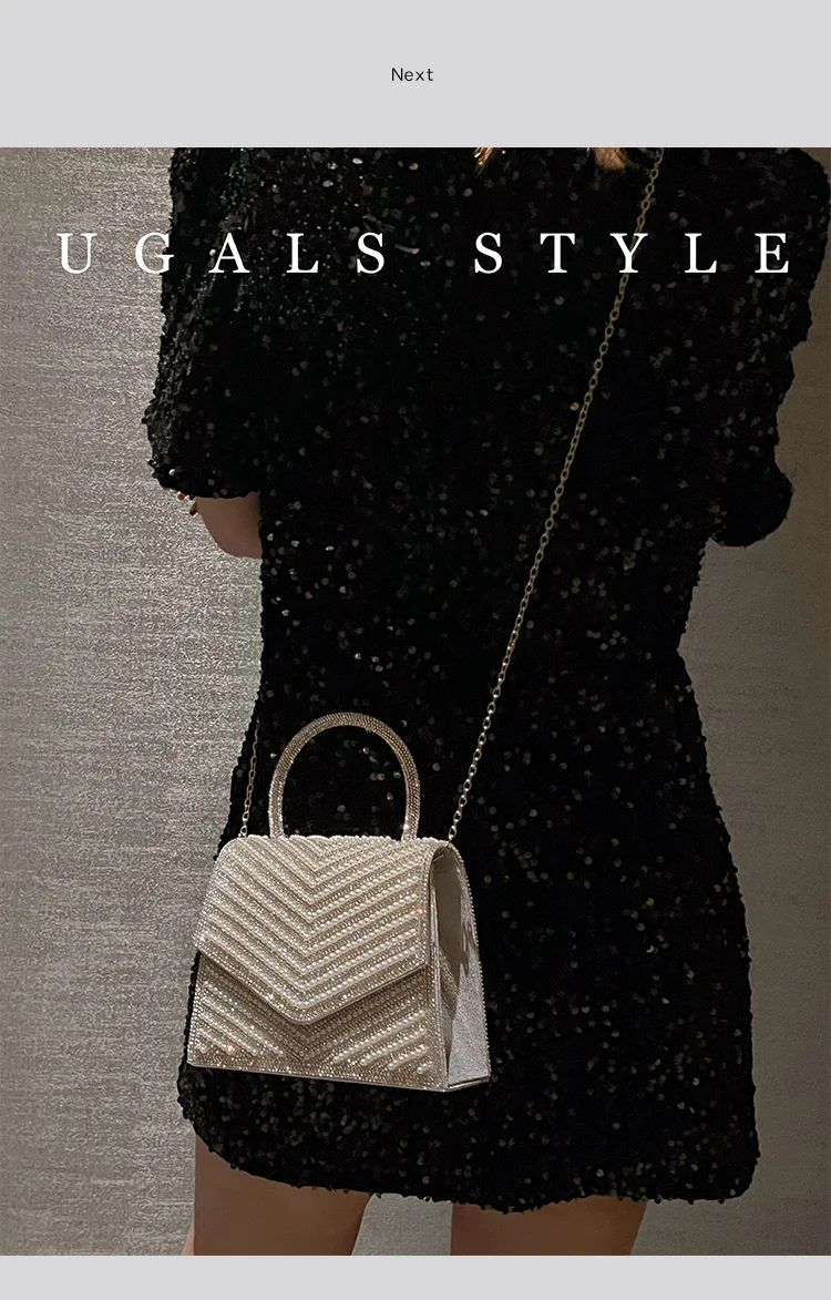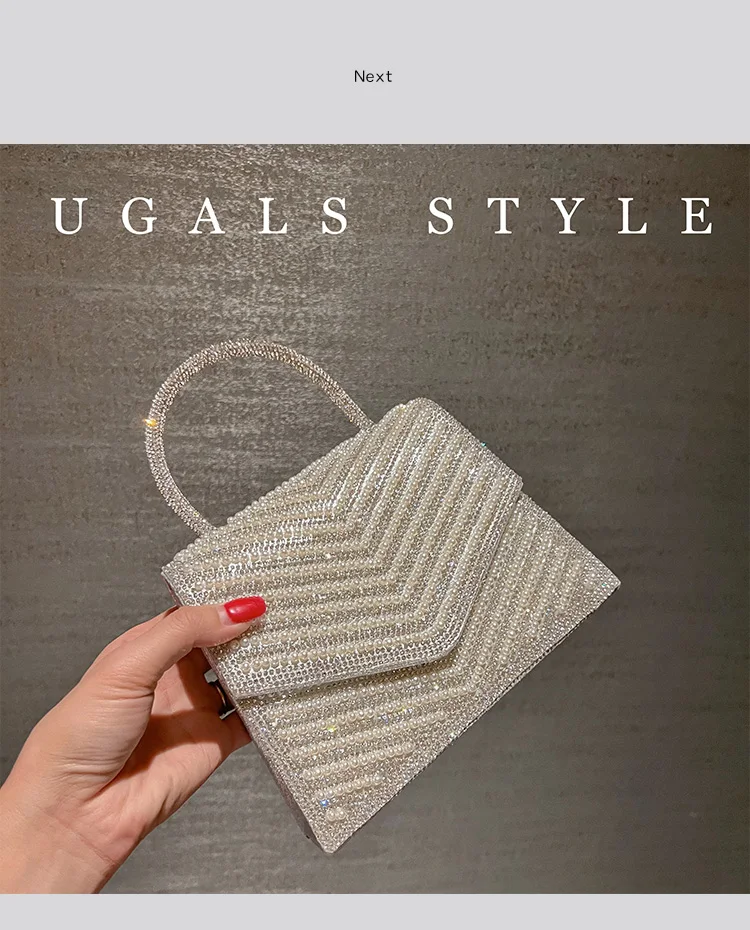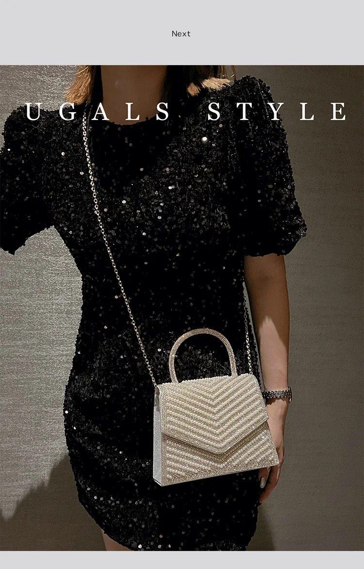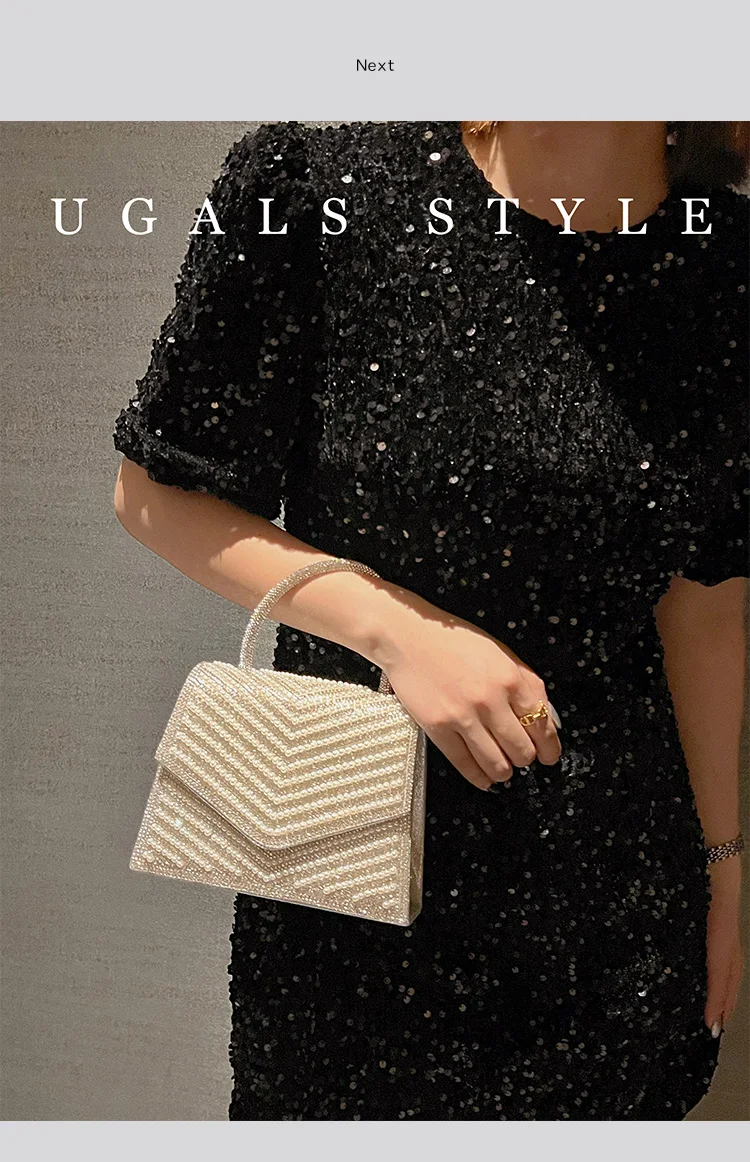 Fashion Pearl Beaded Women's Handbag Glitter Rhinestones Diamond Evening Bag Wedding Party Clutch Purse Shoulder Messenger Bag
