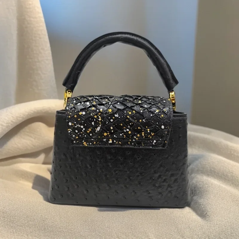 • Ostrich Pattern Design : Featuring a unique ostrich pattern, this crossbody bag adds a touch of elegance and sophistication to any outfit.