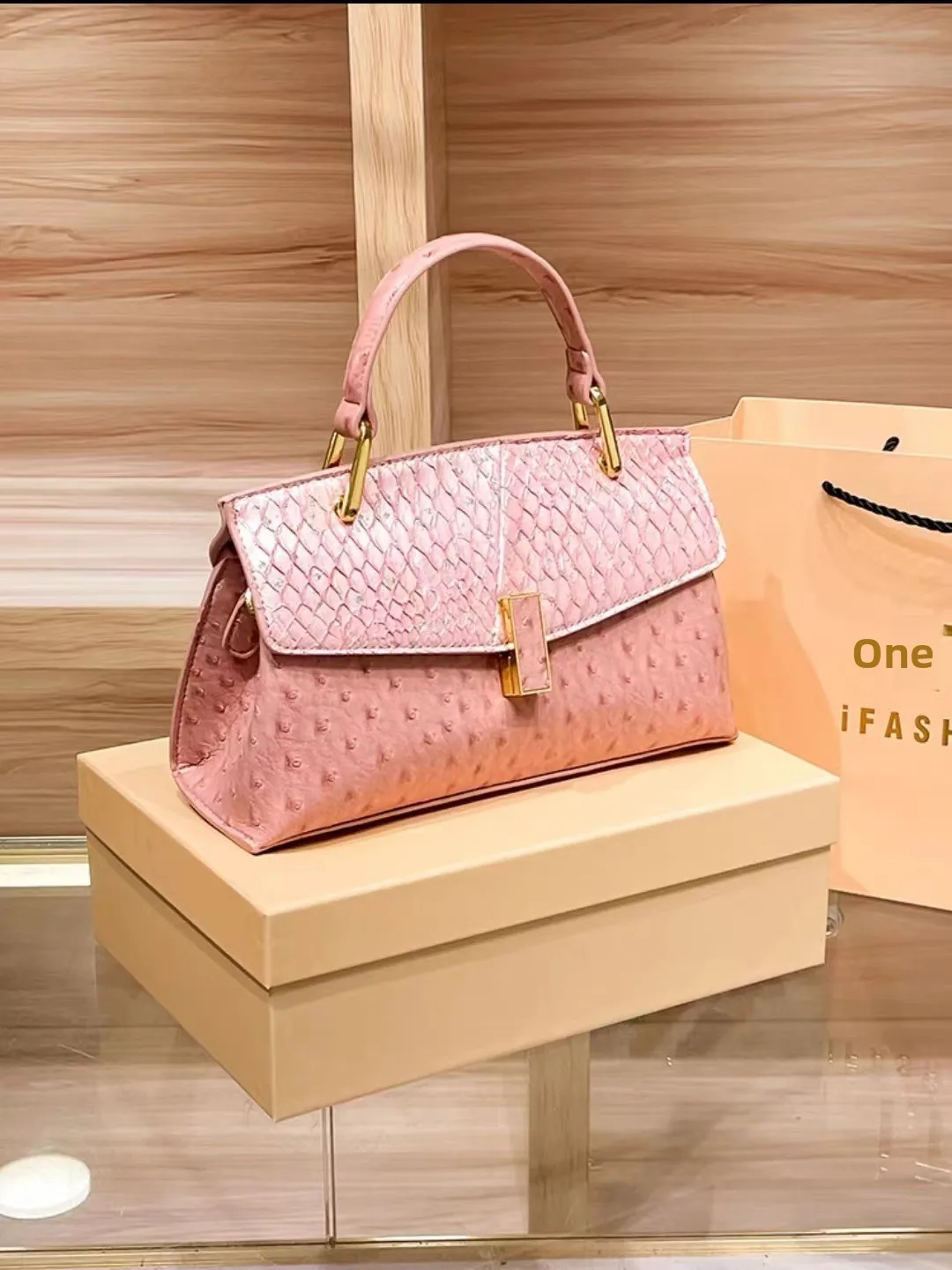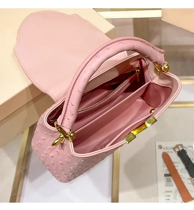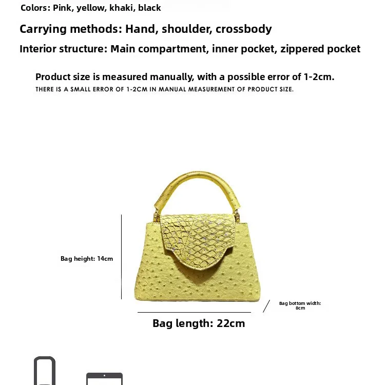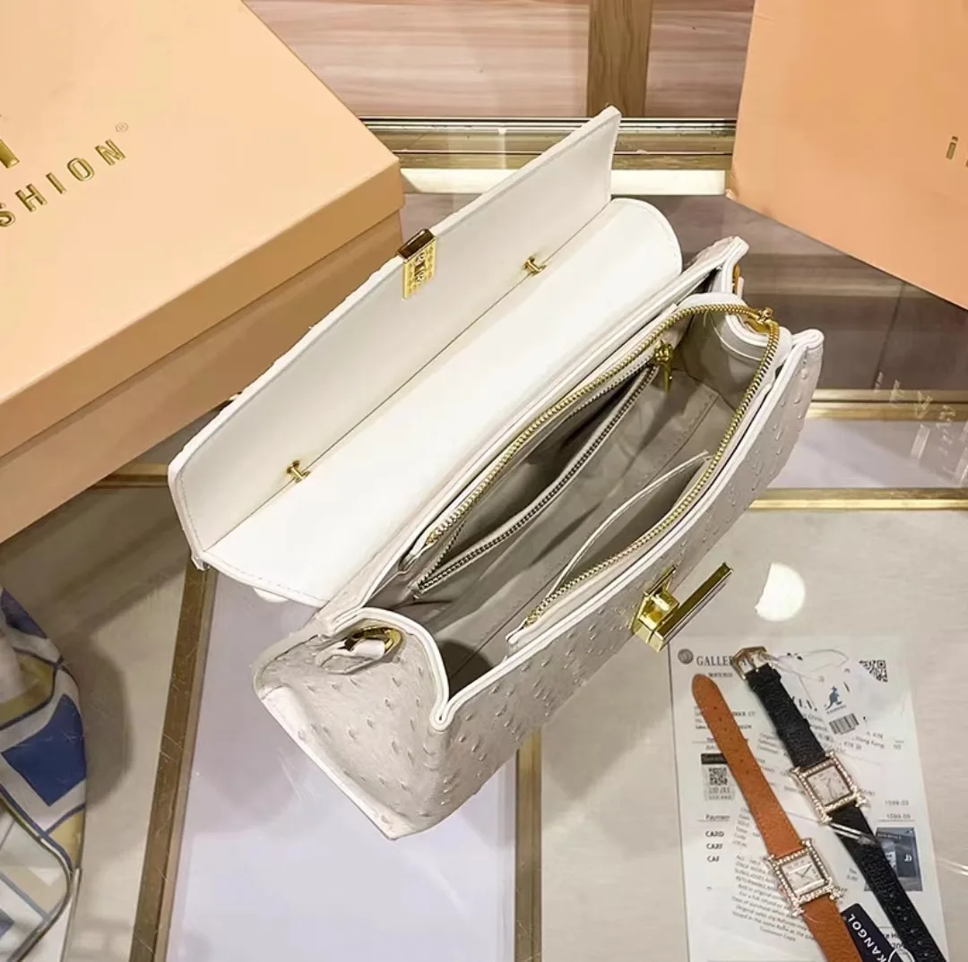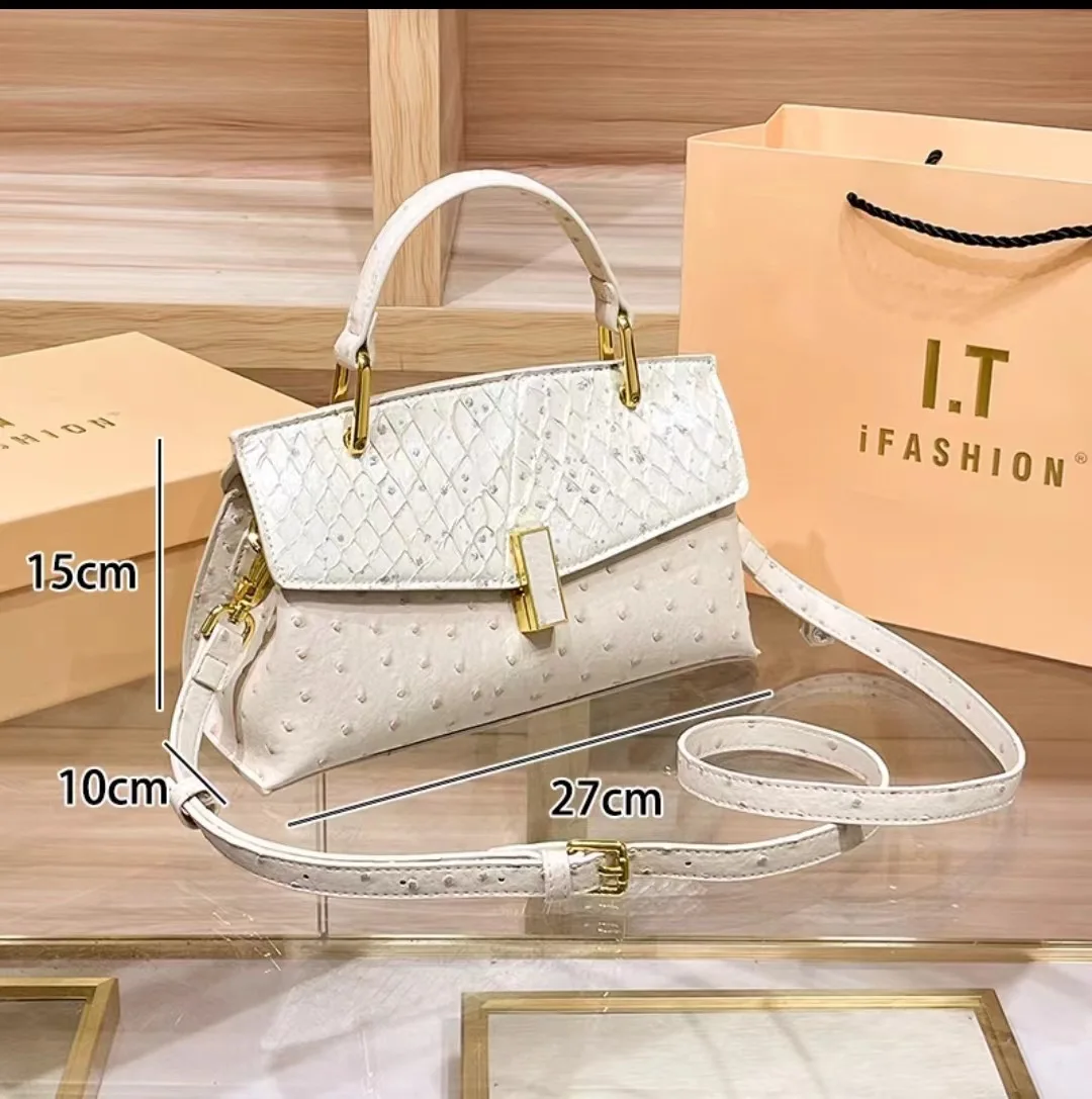The bag boasts a trendy ostrich pattern, adding a touch of sophistication and style to your ensemble. It's a great way to stand out from the crowd.
