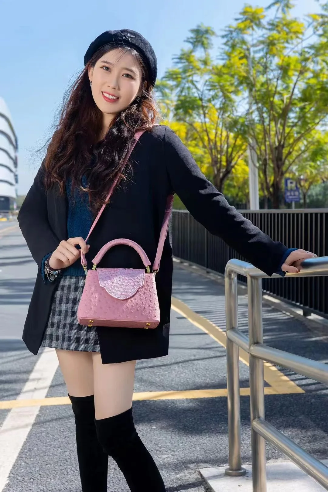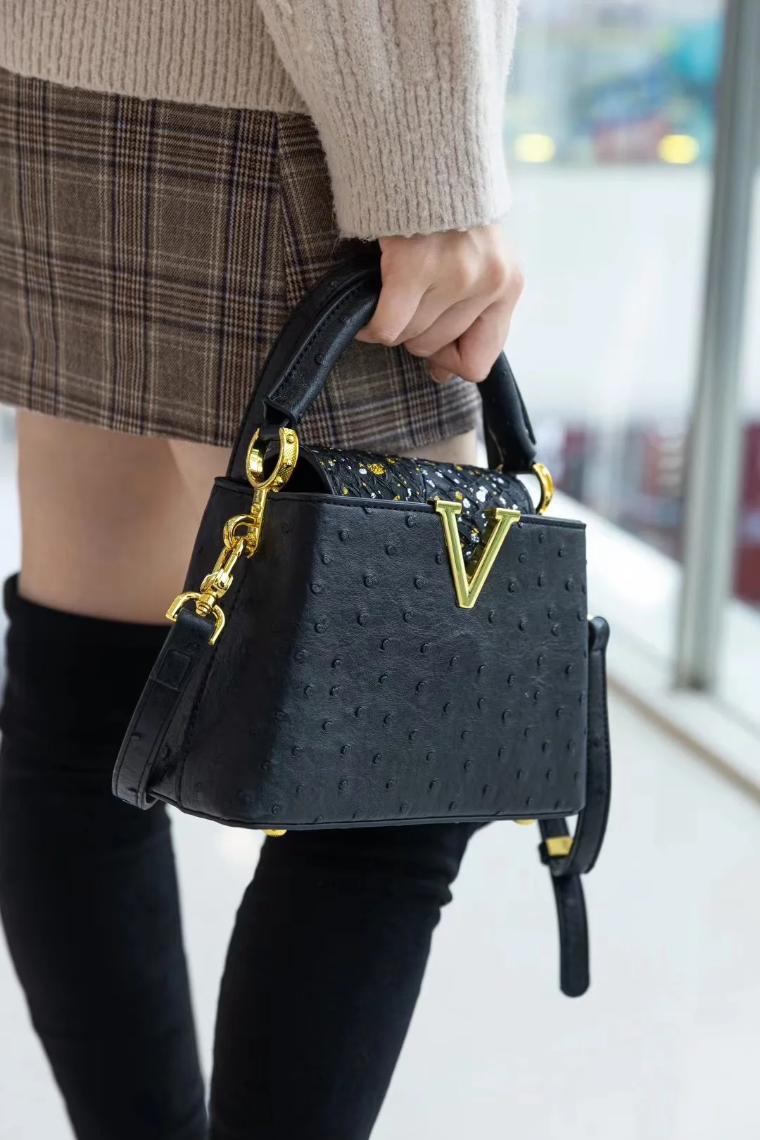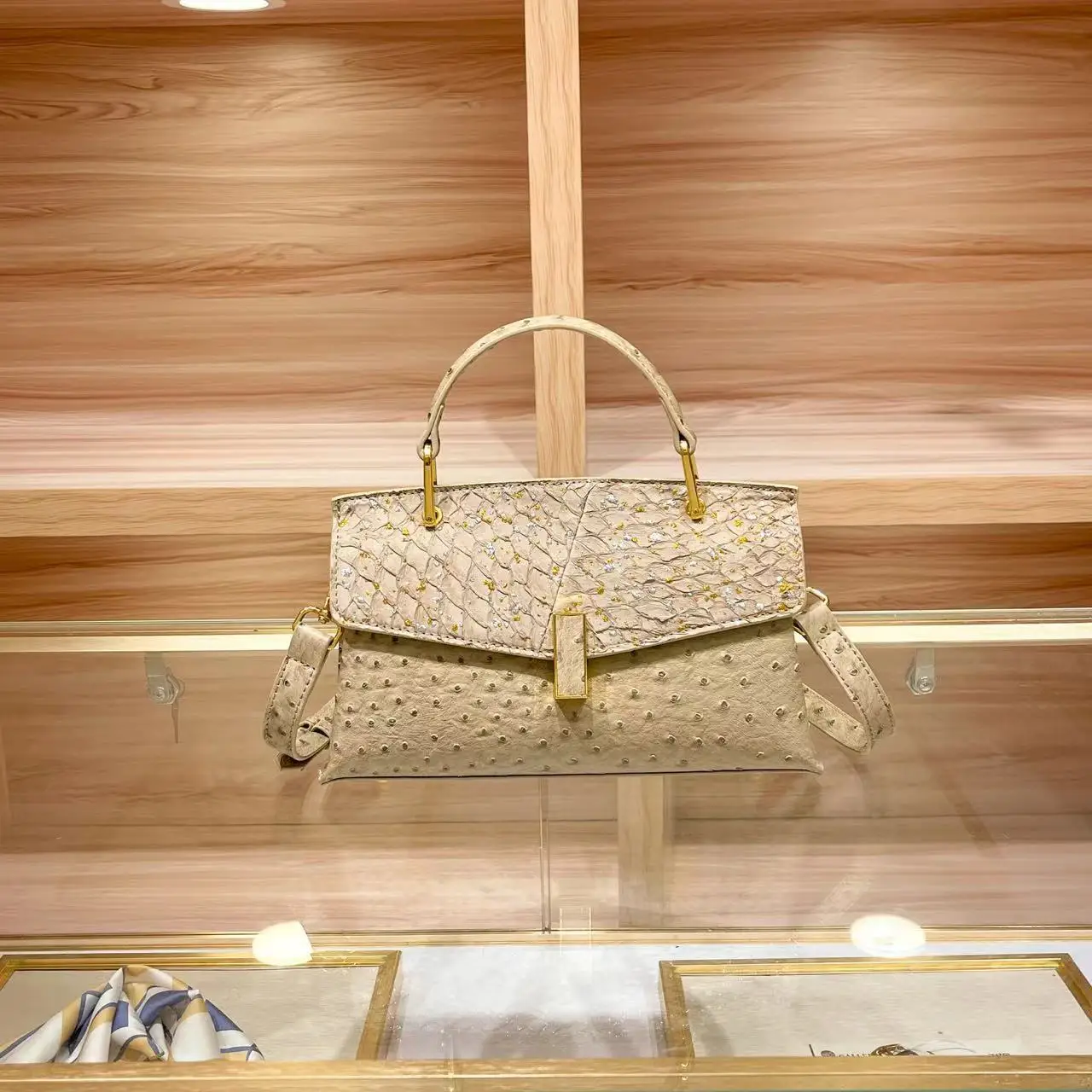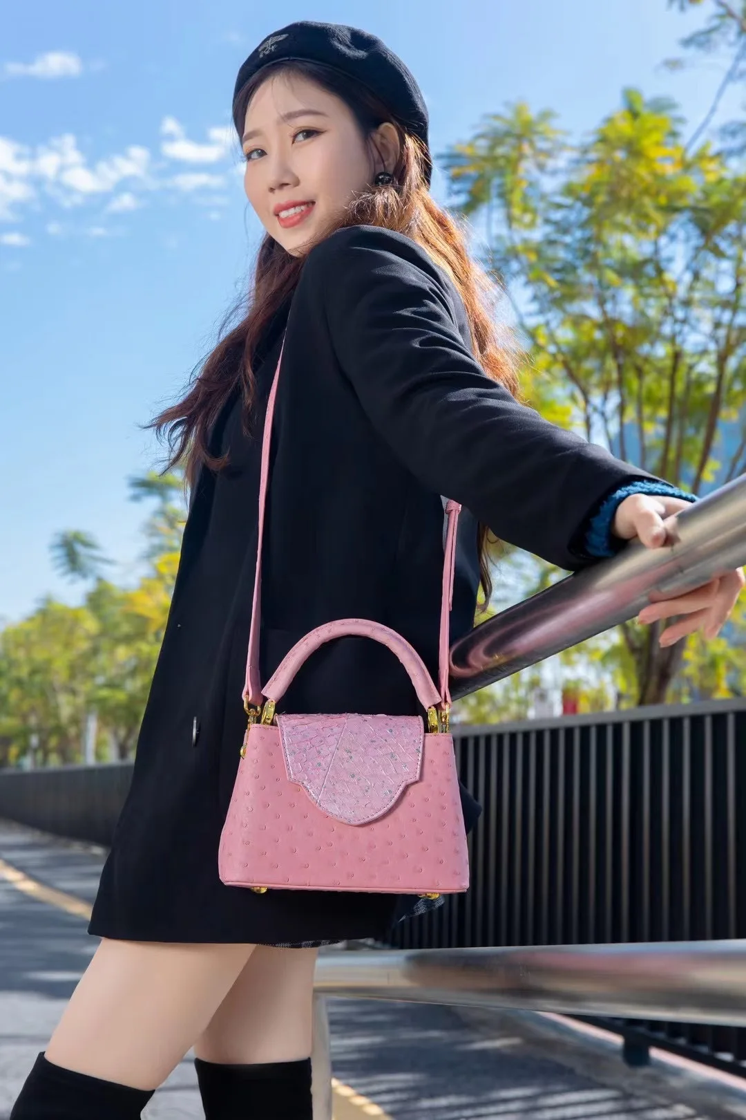 The bag boasts a trendy ostrich pattern, adding a touch of sophistication and style to your ensemble. It's a great way to stand out from the crowd.