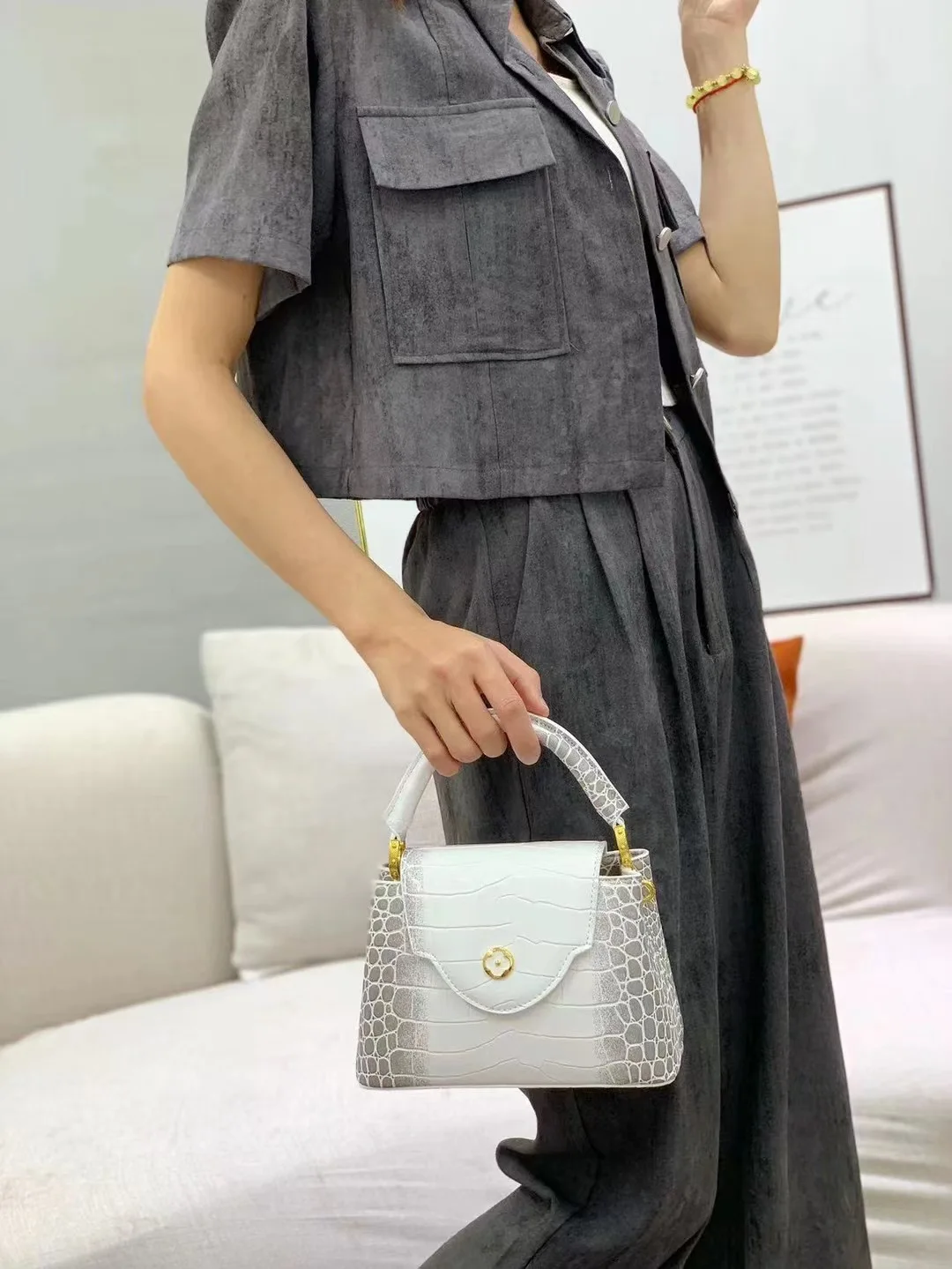 With its medium-sized square shape, this handbag provides ample storage space without being too bulky. It's ideal for carrying essentials like your phone, wallet, and keys.